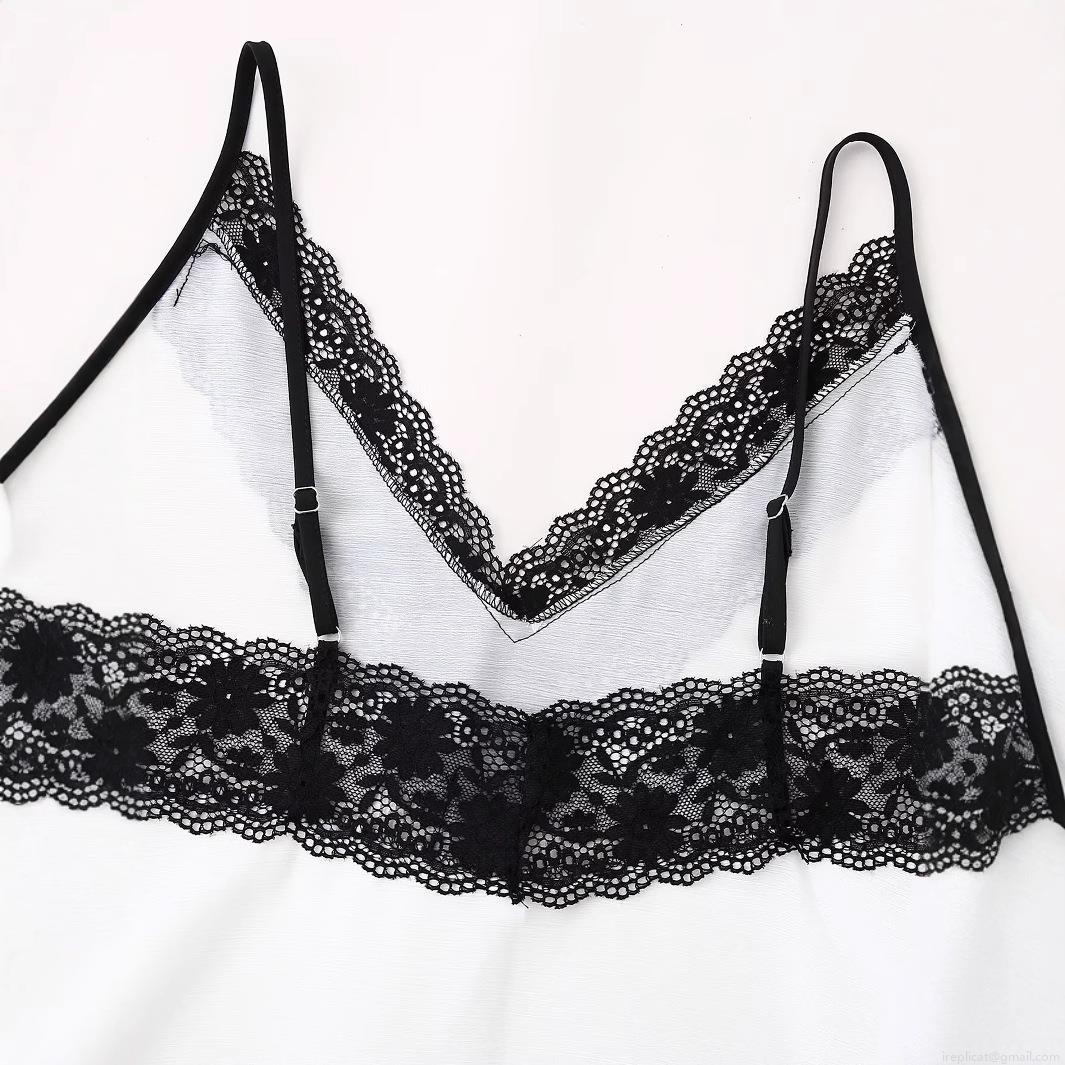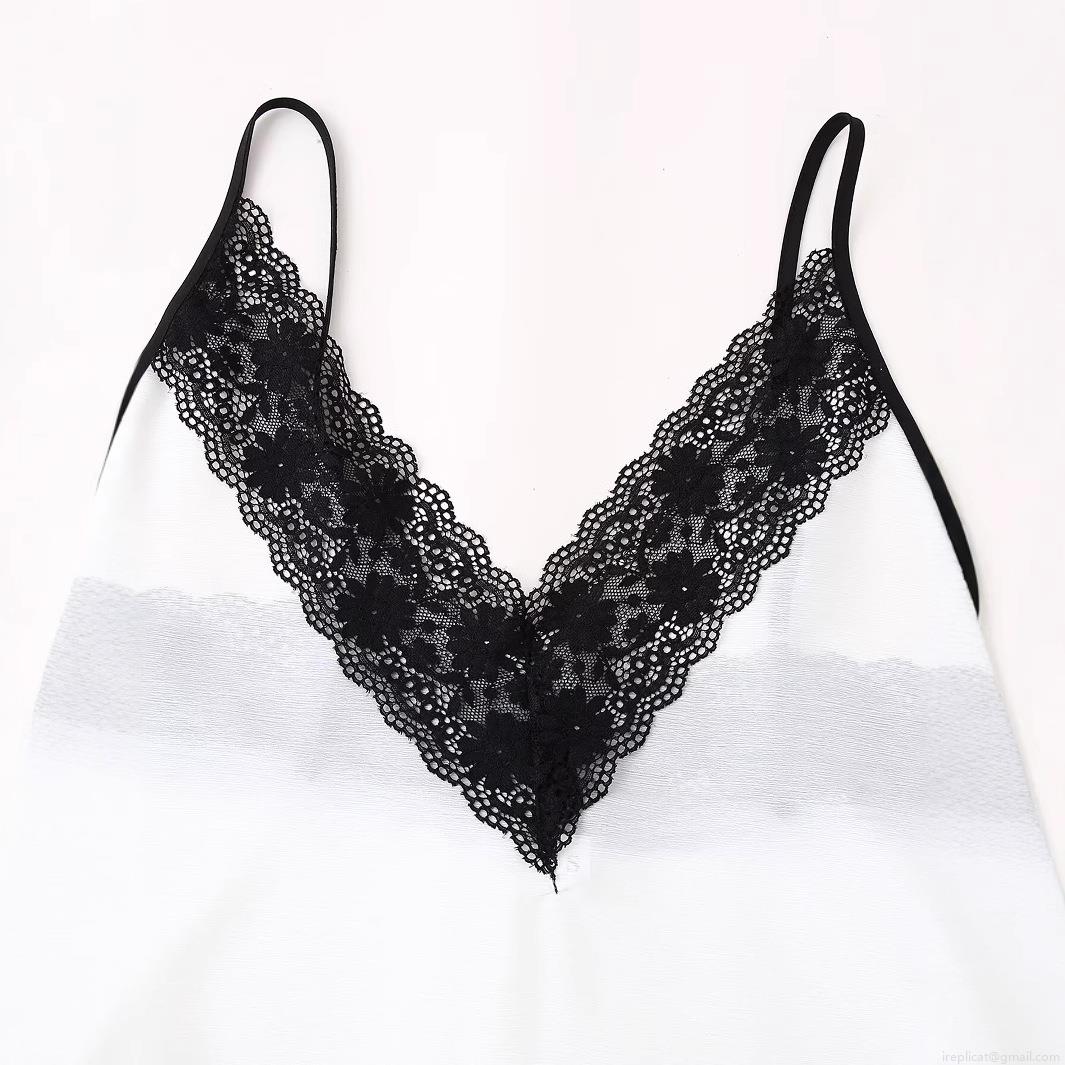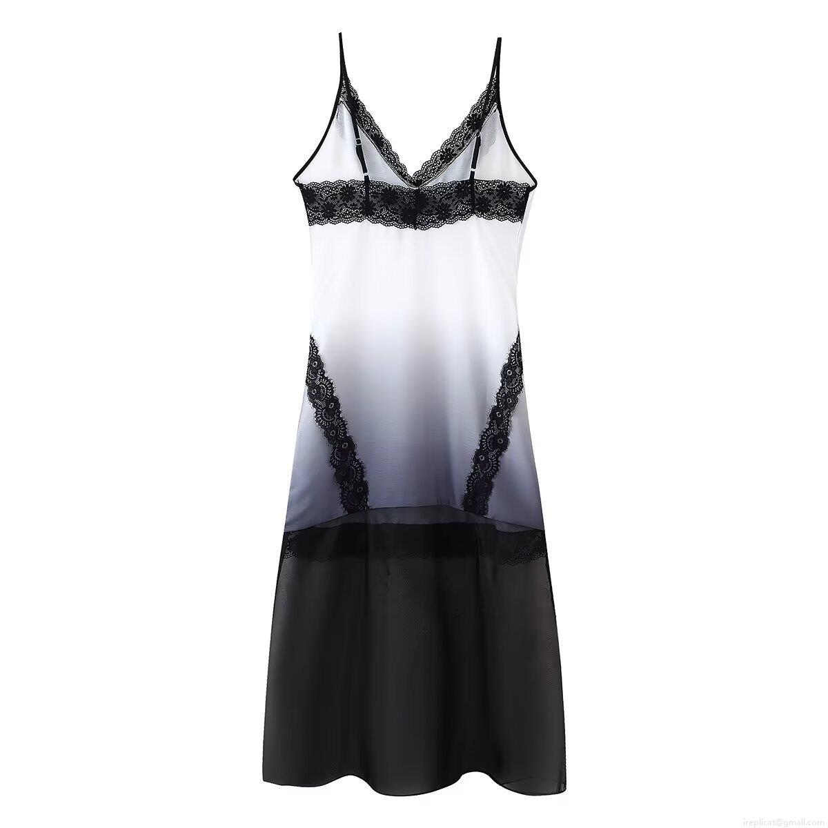 • Sexy Women V Neck Spaghetti Strap Maxi Dress Elegant Black White Gradient Lace Patchwork Satin Slip Dress For Party Date Night