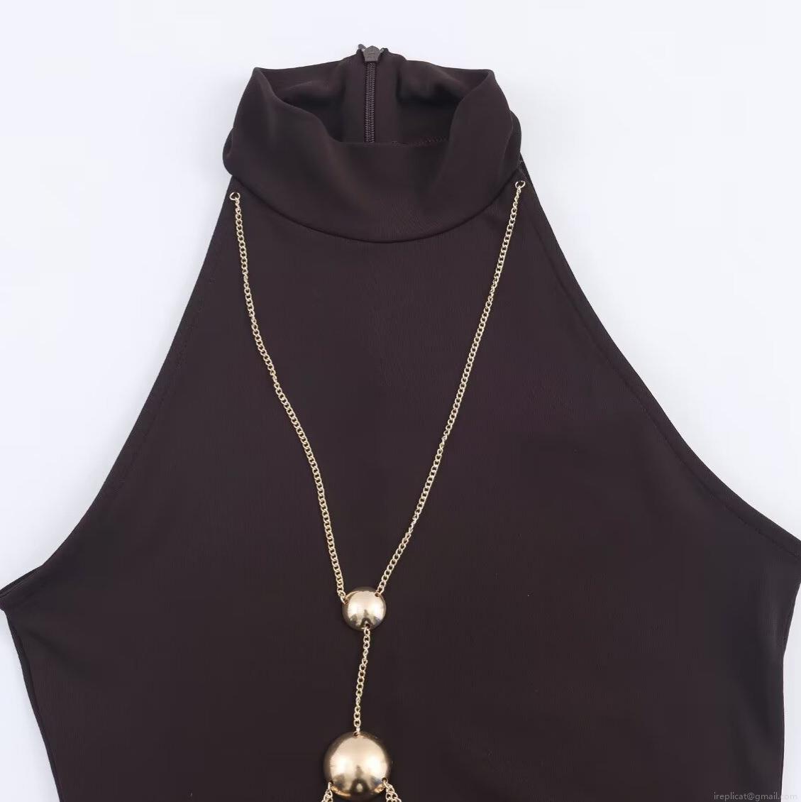 Concealed Zipper On The Back, Gold Chain Decoration Around The Neck, Hip Ruching Design