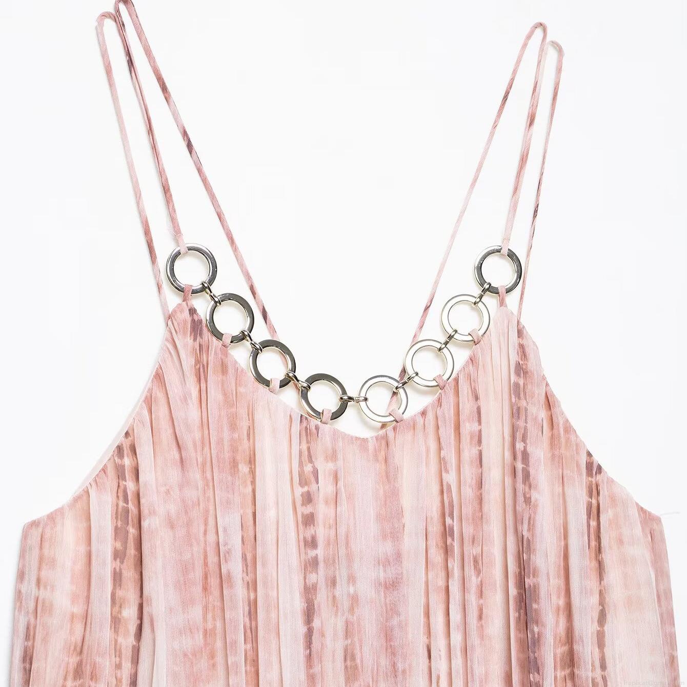 Tie Dye, Pleats, Metal Ring, Irregular Texture, Thin Straps