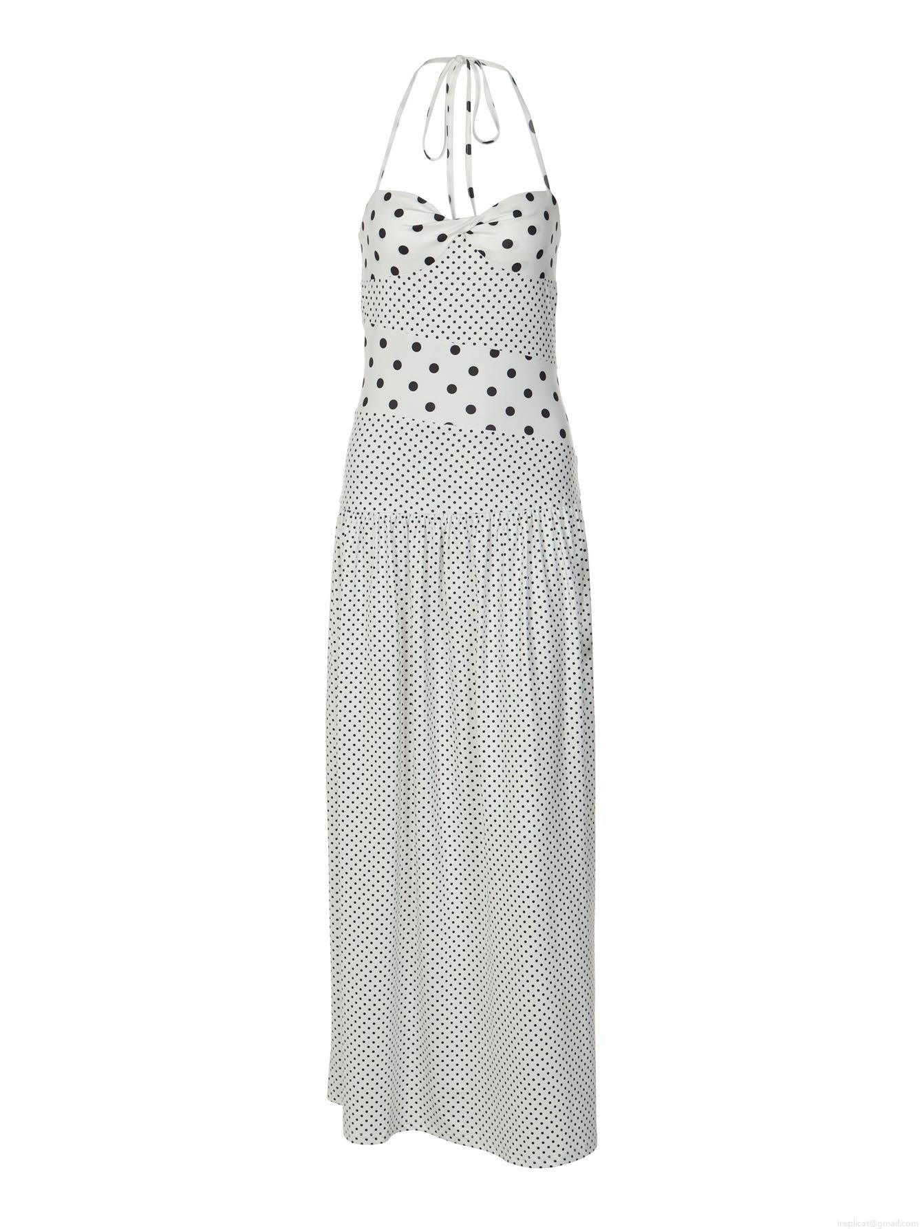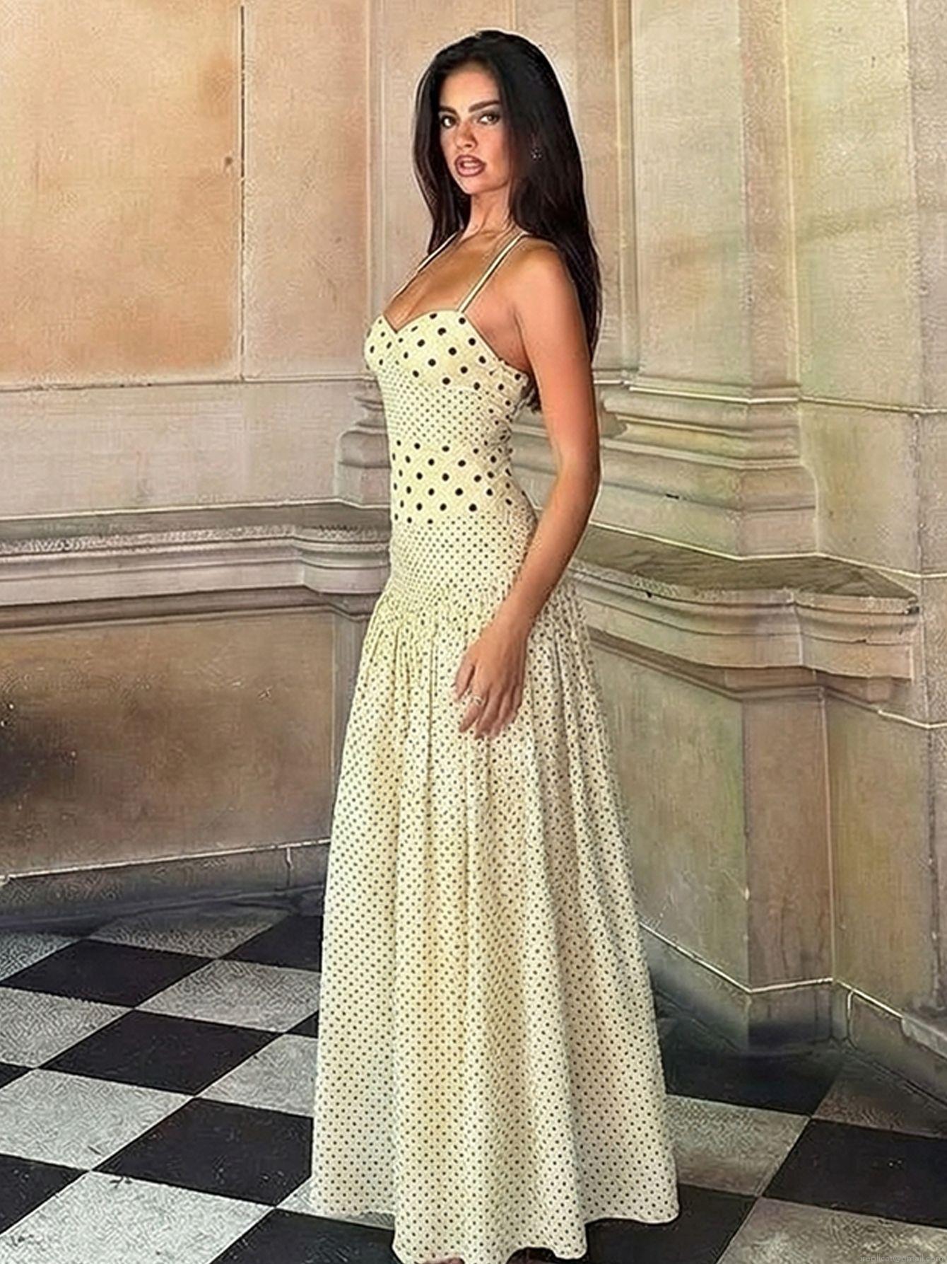 • Summer Women's Halter Polka Dot Maxi Dress Vintage Backless Pleated A-Line Long Dress Polyester Spandex Elastic Sun Dress For Vacation Beach Party