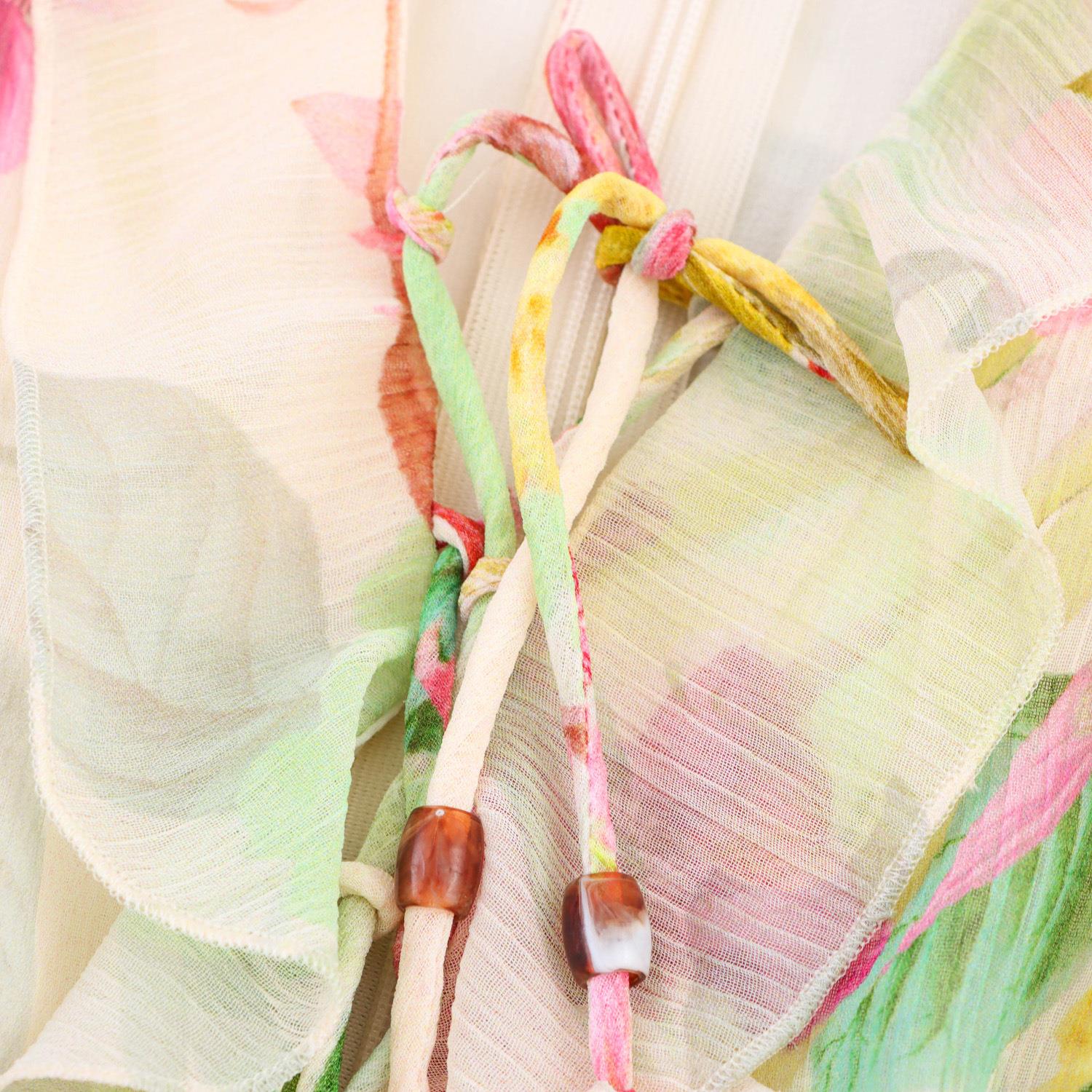 Sweet Floral V-Neck Sleeveless Maxi Dress For Women Ruffle Trim Hollow Out Waist Polyester Chiffon Long Dress Summer Beach Party Vacation