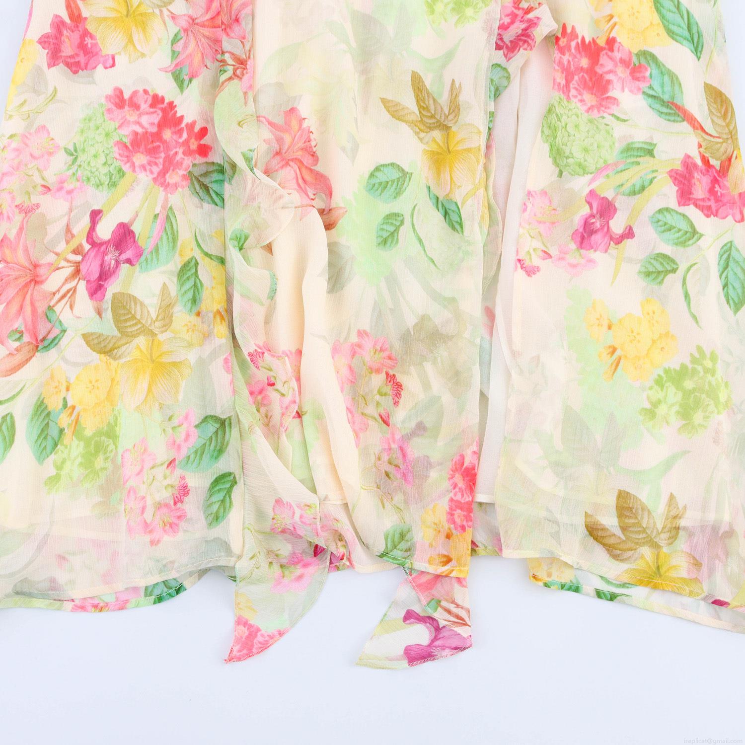 • Sweet Floral V-Neck Sleeveless Maxi Dress For Women Ruffle Trim Hollow Out Waist Polyester Chiffon Long Dress Summer Beach Party Vacation