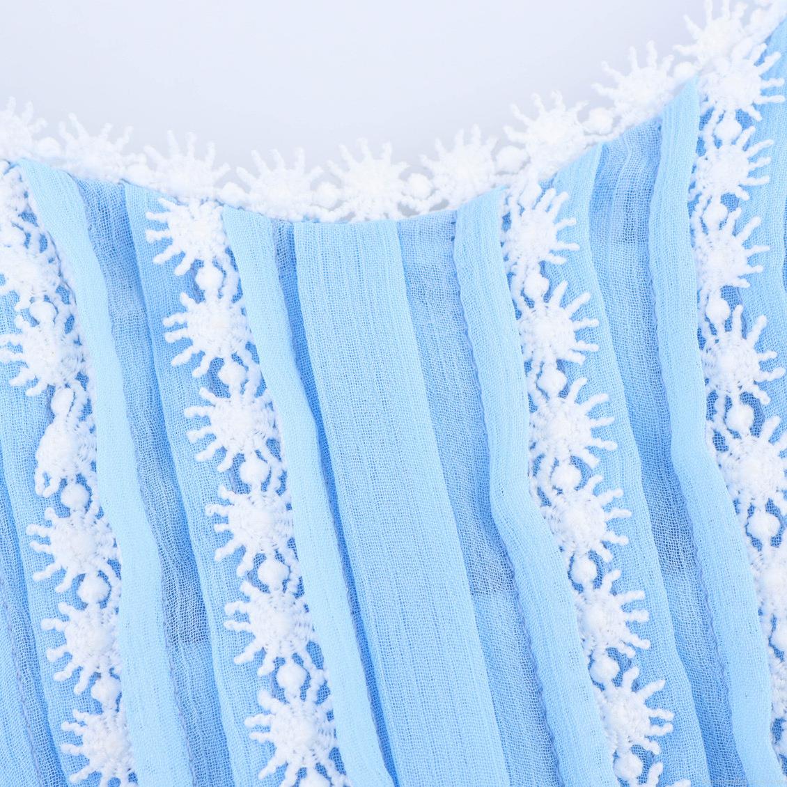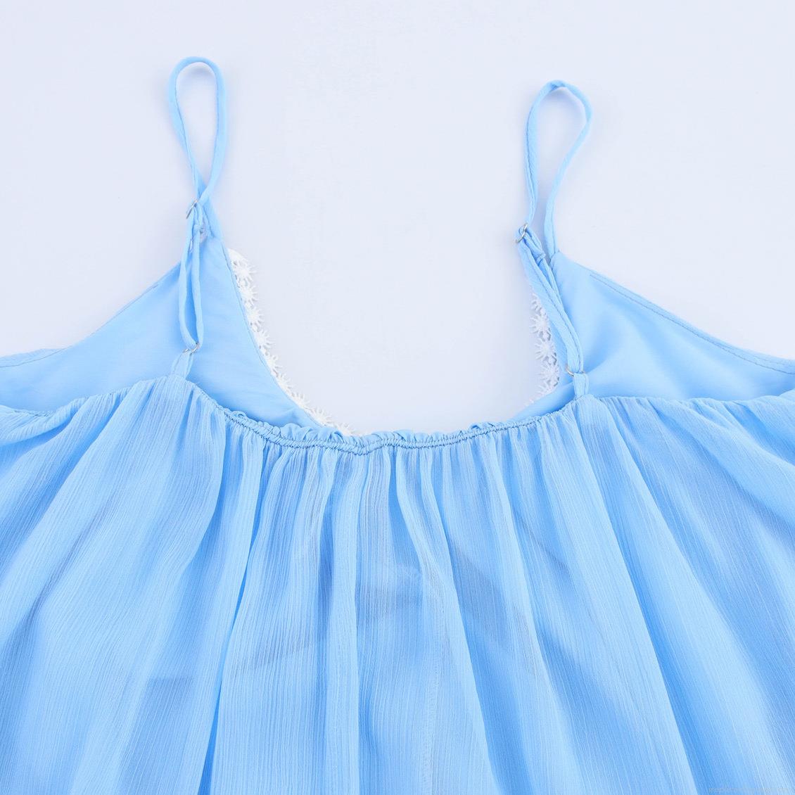 • Sweet Light Blue Chiffon Camisole Dress For Women Lace Patchwork Square Neck Pleated Ruffle Hem Maxi Long Dress Elegant Summer Sleeveless Party Vacation Clothing