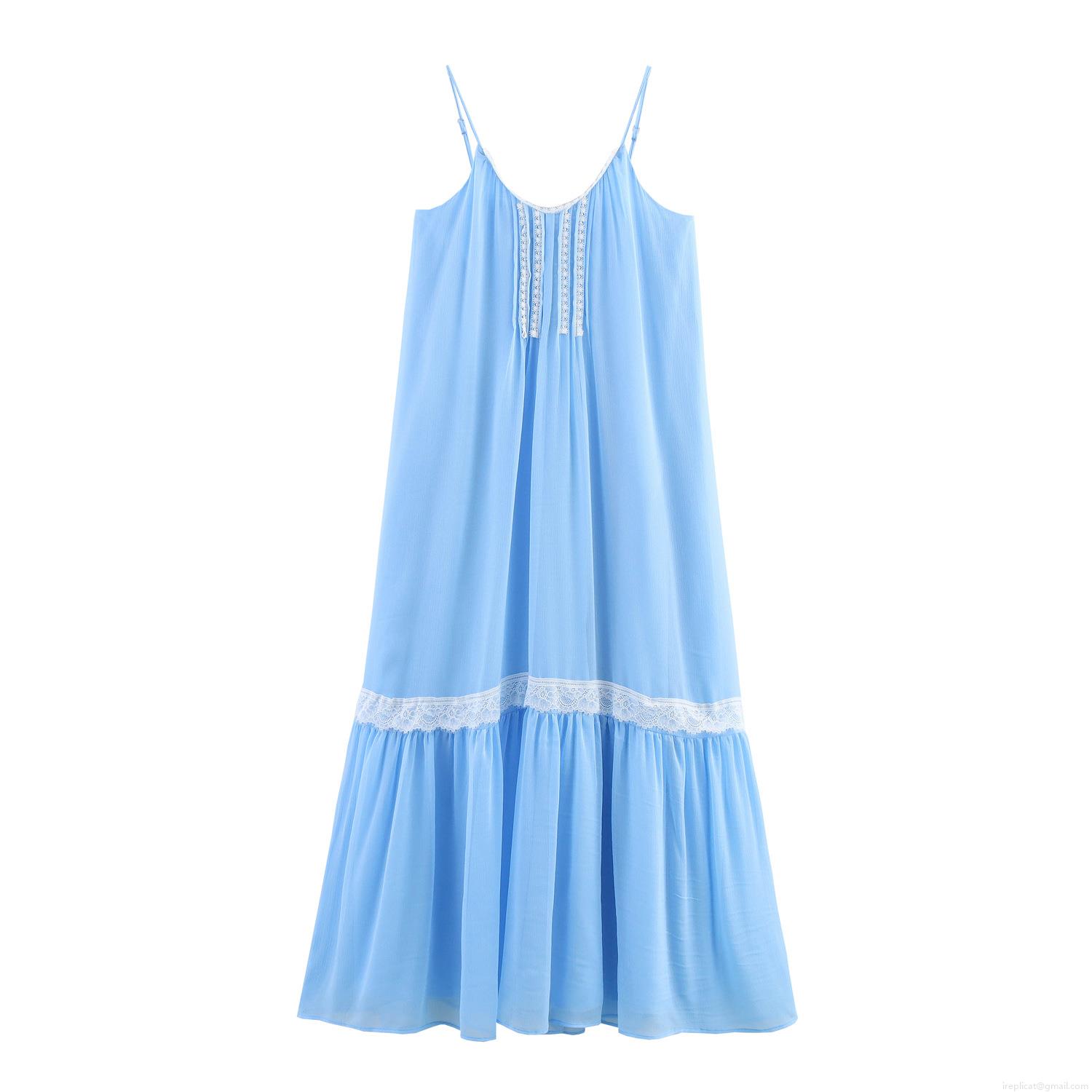 Solid Color, Pleats, Ruffles, Lace, Lace Patchwork, Thin Straps