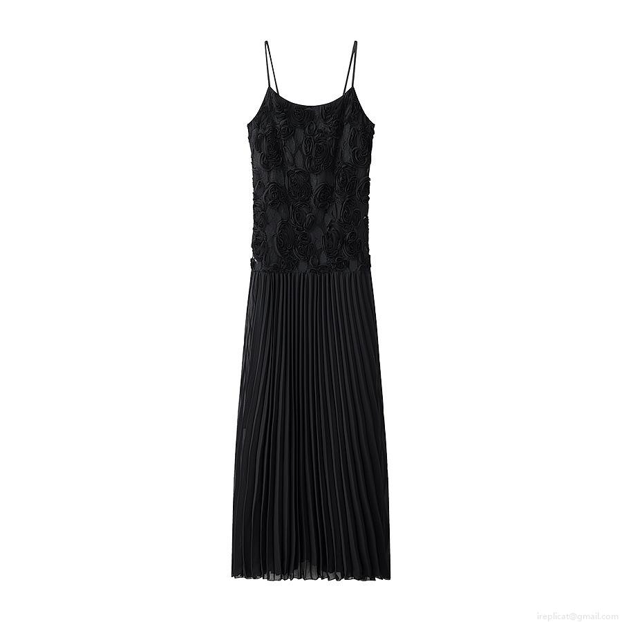 • Women 3D Rose Flower Patchwork Cami Dress Elegant Spaghetti Strap Pleated Chiffon Maxi Dress For Party Wedding Dating Summer Casual Fashion Gown