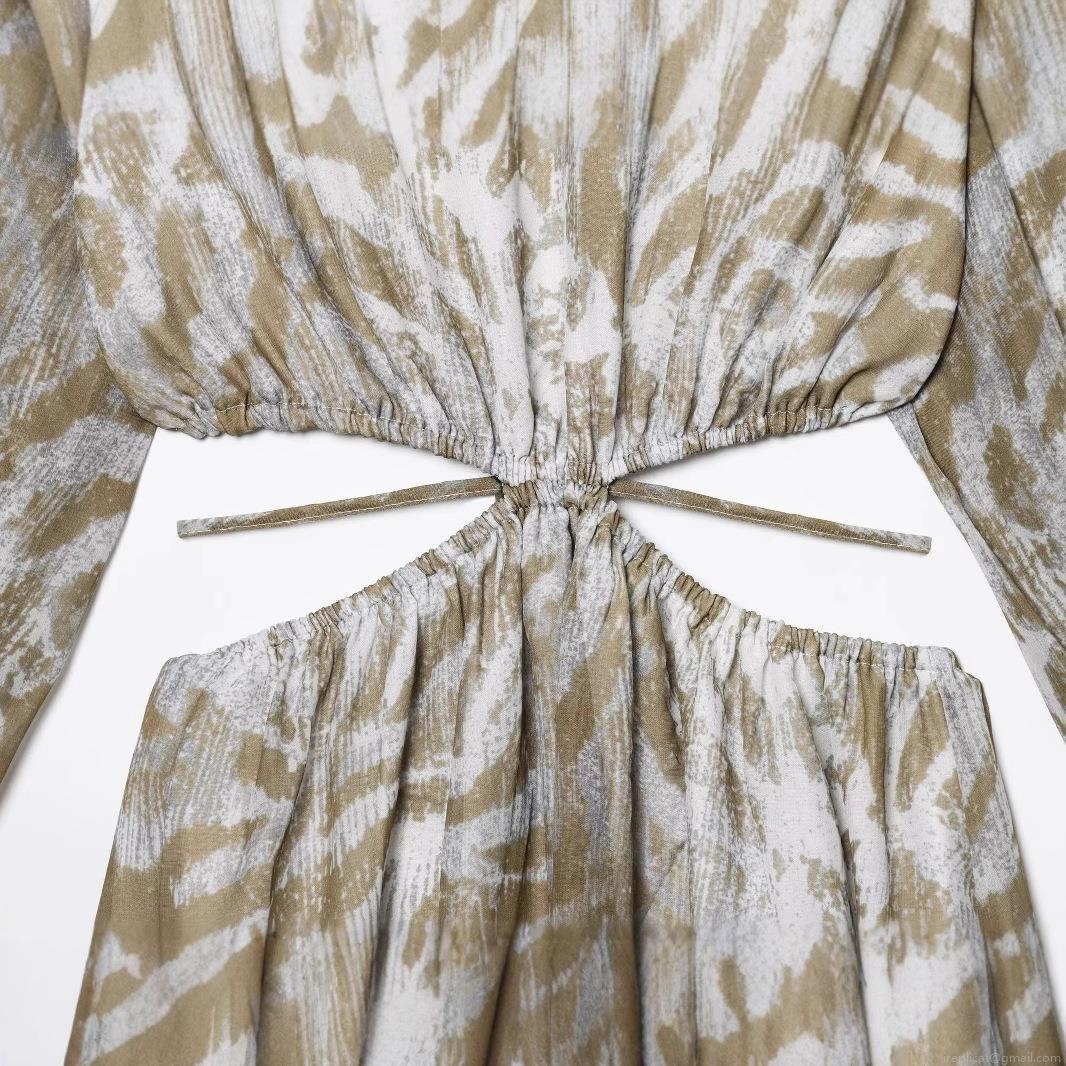 • Women Abstract Animal Print Maxi Dress Backless Cut Out Waist Long Sleeve Round Neck Elegant Chic Long Dress for Party Vacation Spring Autumn
