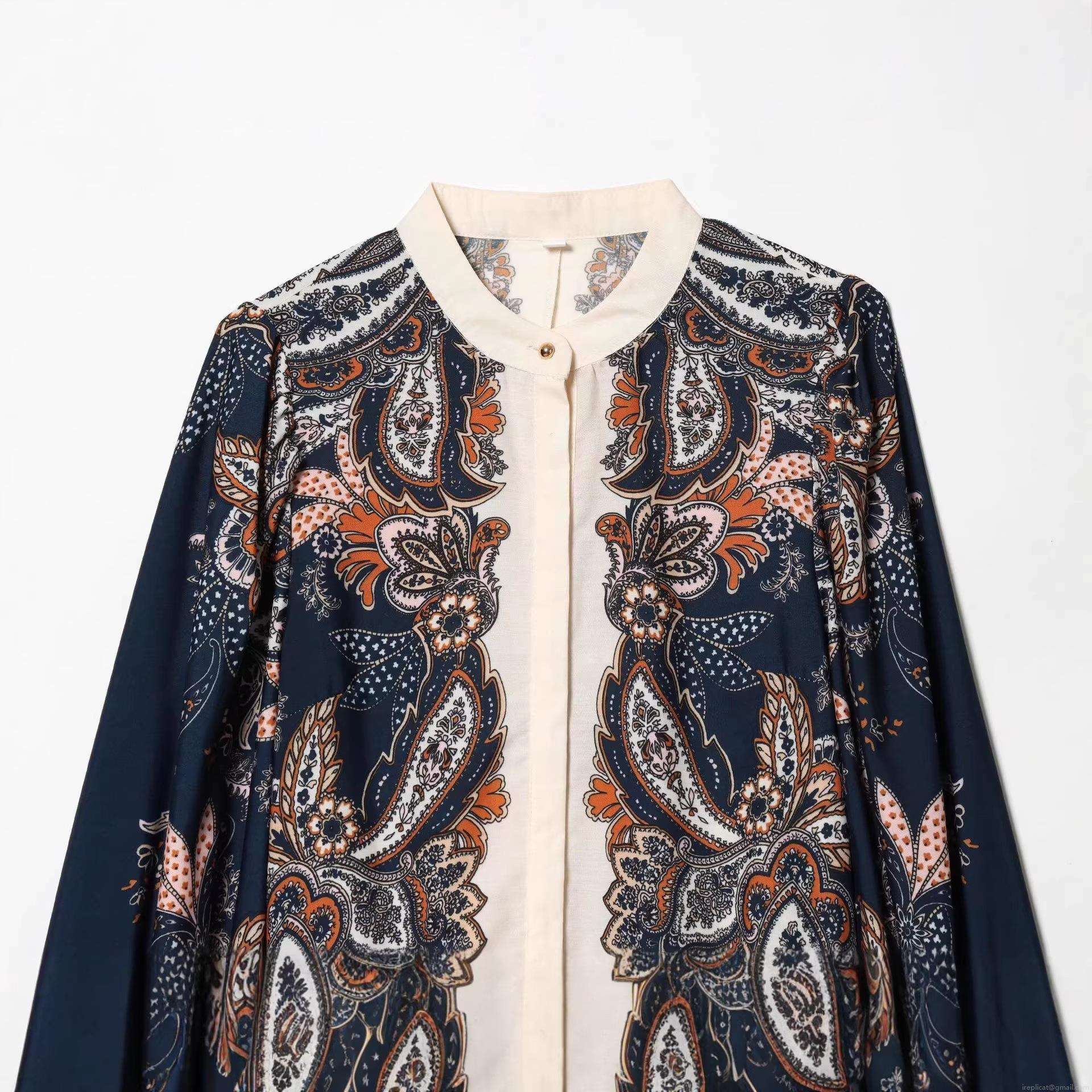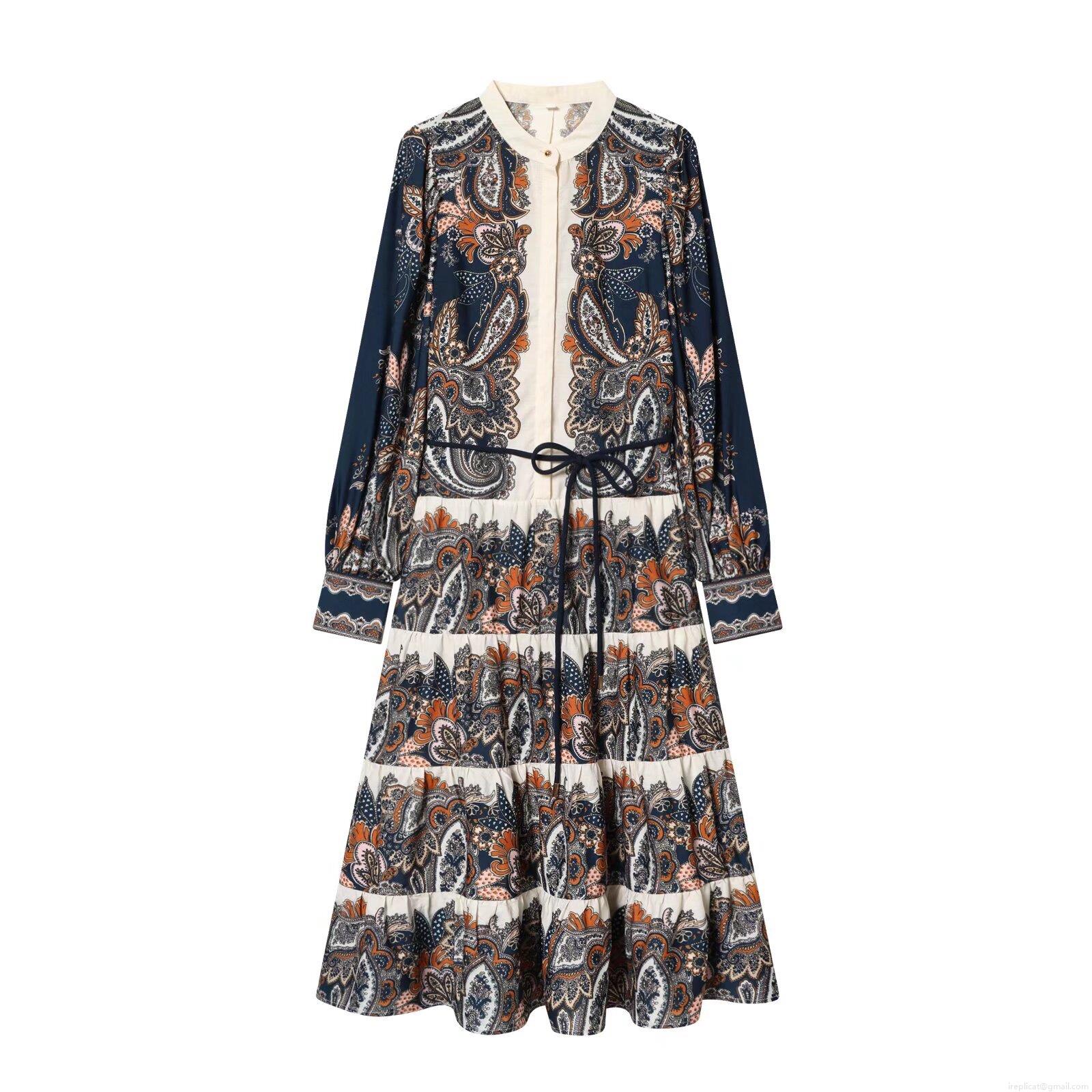 • Women Bohemian Paisley Print Maxi Dress Long Sleeve Tiered Cake Skirt Stand Collar Waist Tie Elegant Vacation Dresses For Women Fashion Print