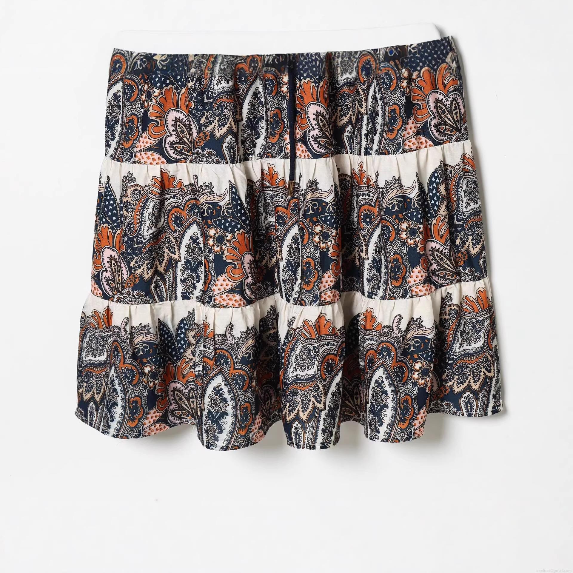 Cashew Flowers, Printing, Paisley, Lace, Cake Skirt, Multi-layered Hem