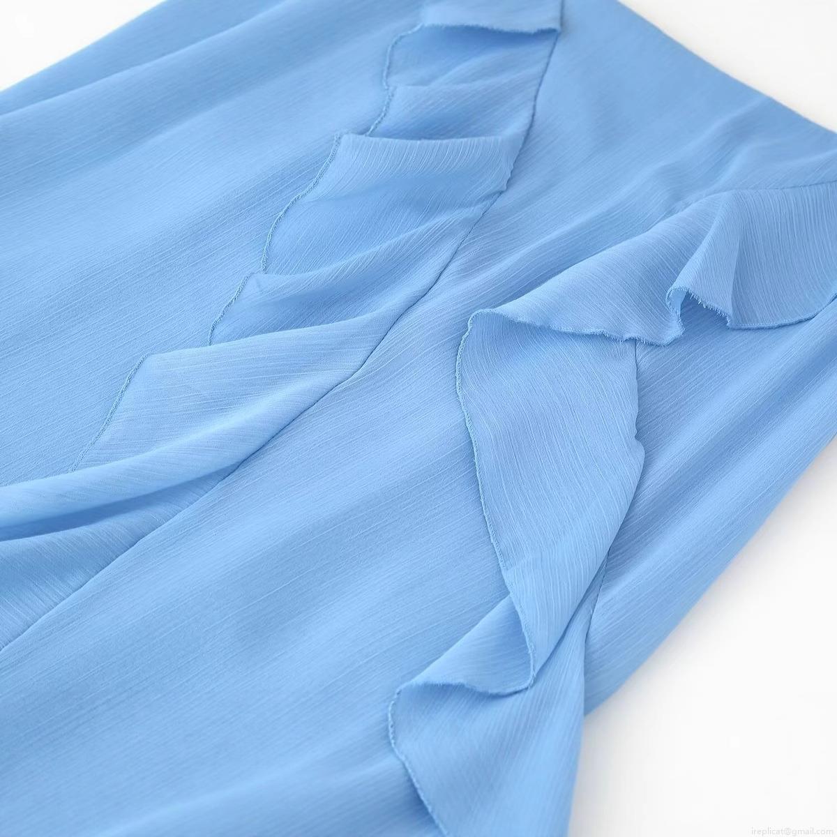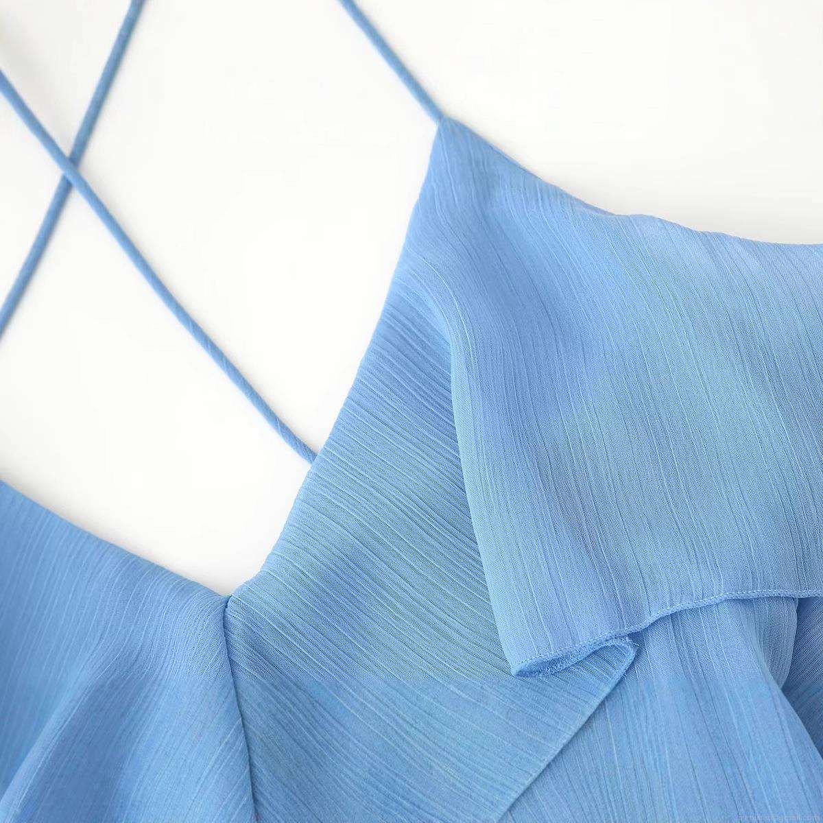 • Women Camisole Dress Polyester Chiffon Ruffle Layered V-Neck Cross Backless Sky Blue Maxi Dress Elegant Party Vacation Summer Clothing