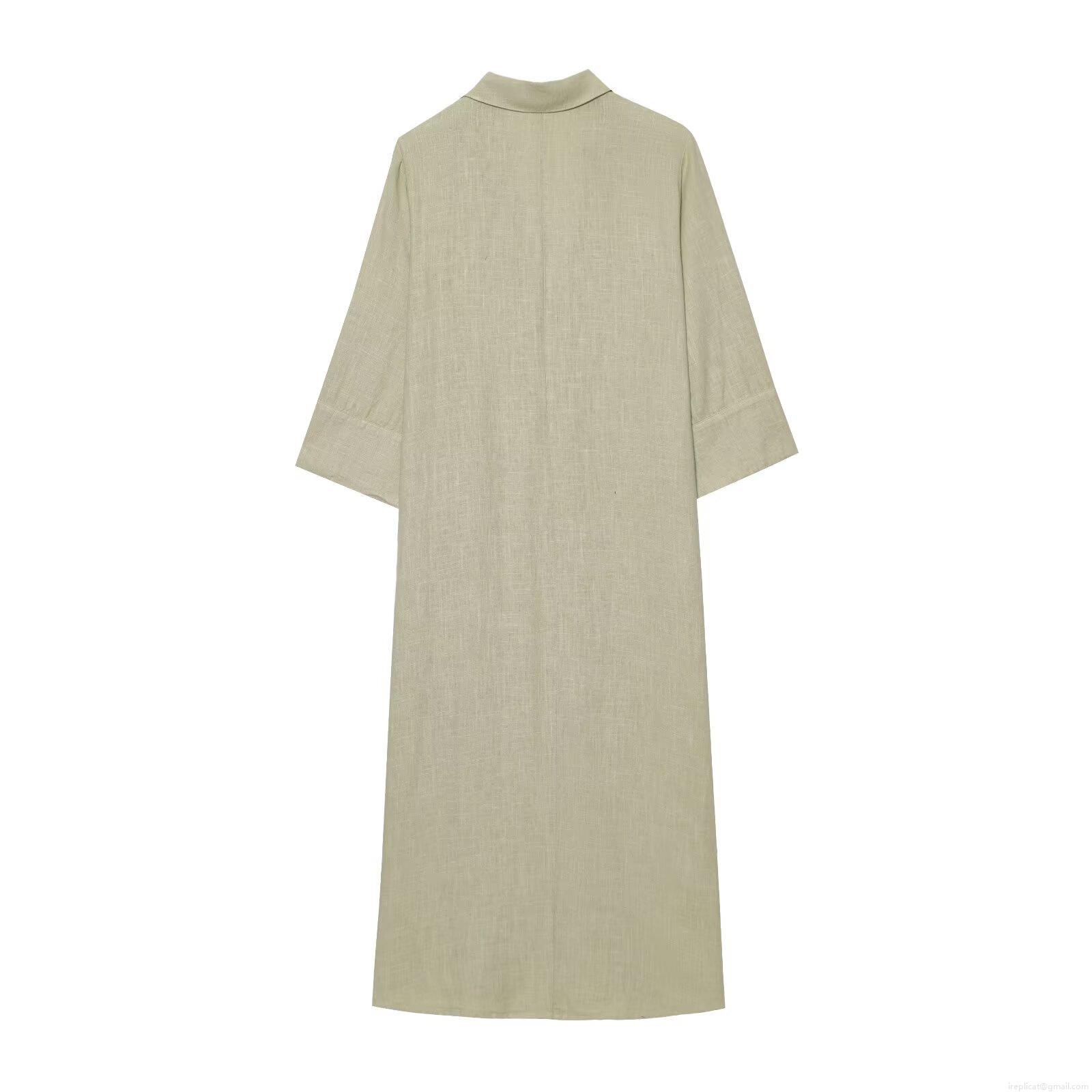 • Women Casual Solid Color Shirt Maxi Dress Single Breasted Long Sleeve With Breast Pockets Side Slit Natural Linen Style Polyester Dress For Daily Vacation Streetwear