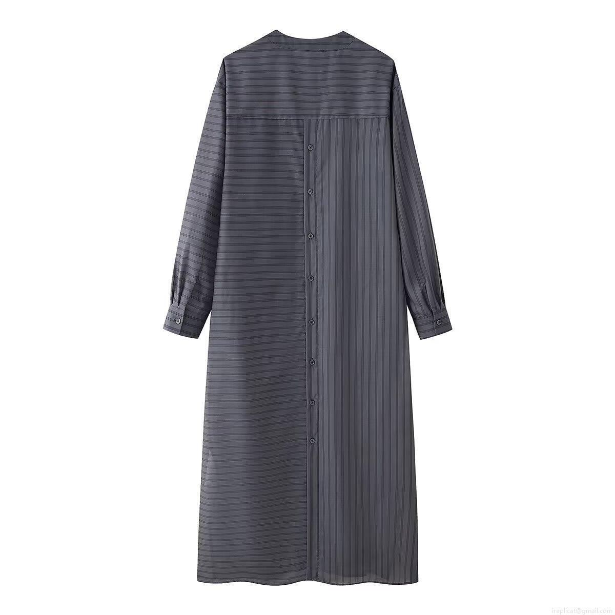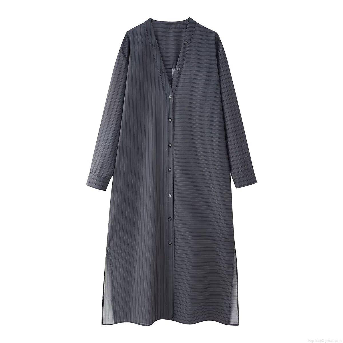 • Women Casual Stripe Shirt Dress Polyester Spandex Loose V Neck Long Sleeve Maxi Dress Single Breasted Button Down Dress with Side Slit for Autumn Fashion Comfortable A-Line Dress