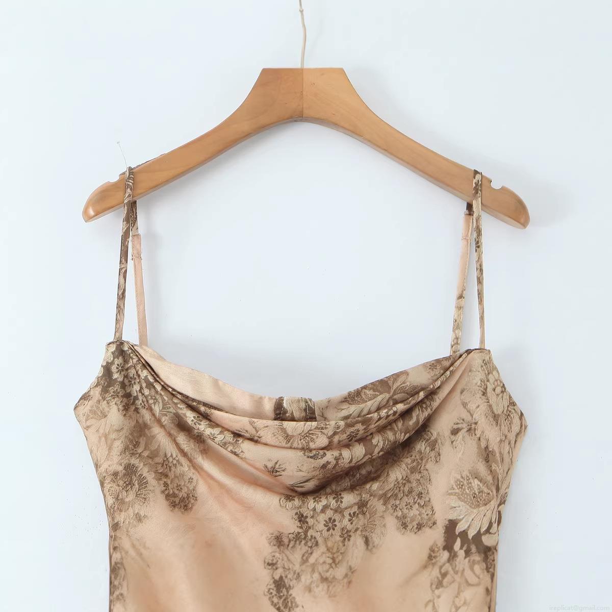 • Women Cowl Neck Satin Floral Print Slip Maxi Dress Elegant Spaghetti Strap Vintage Backless Slim Fit Mermaid Party Evening Dress