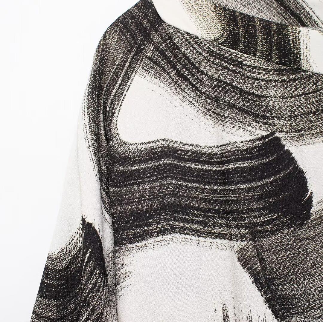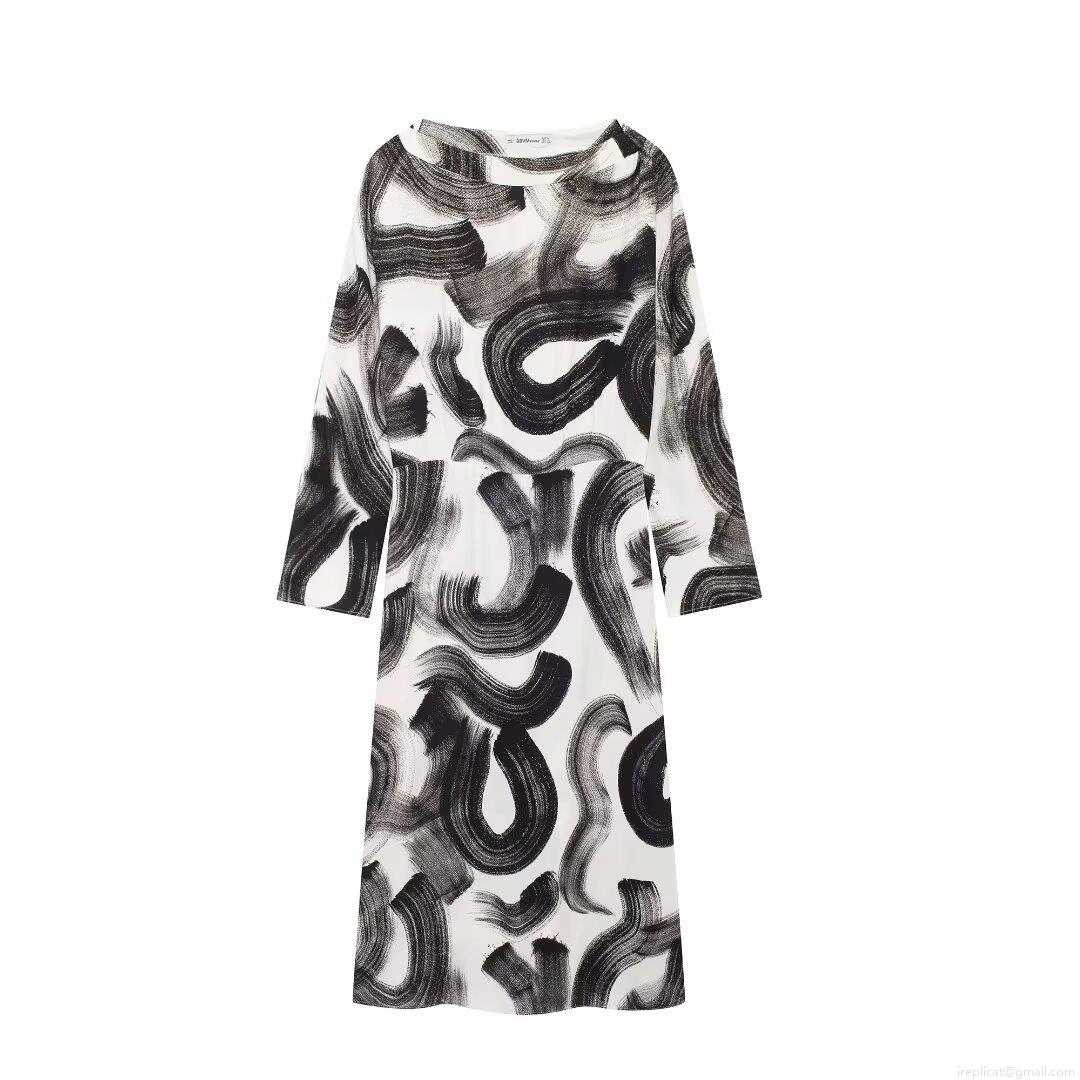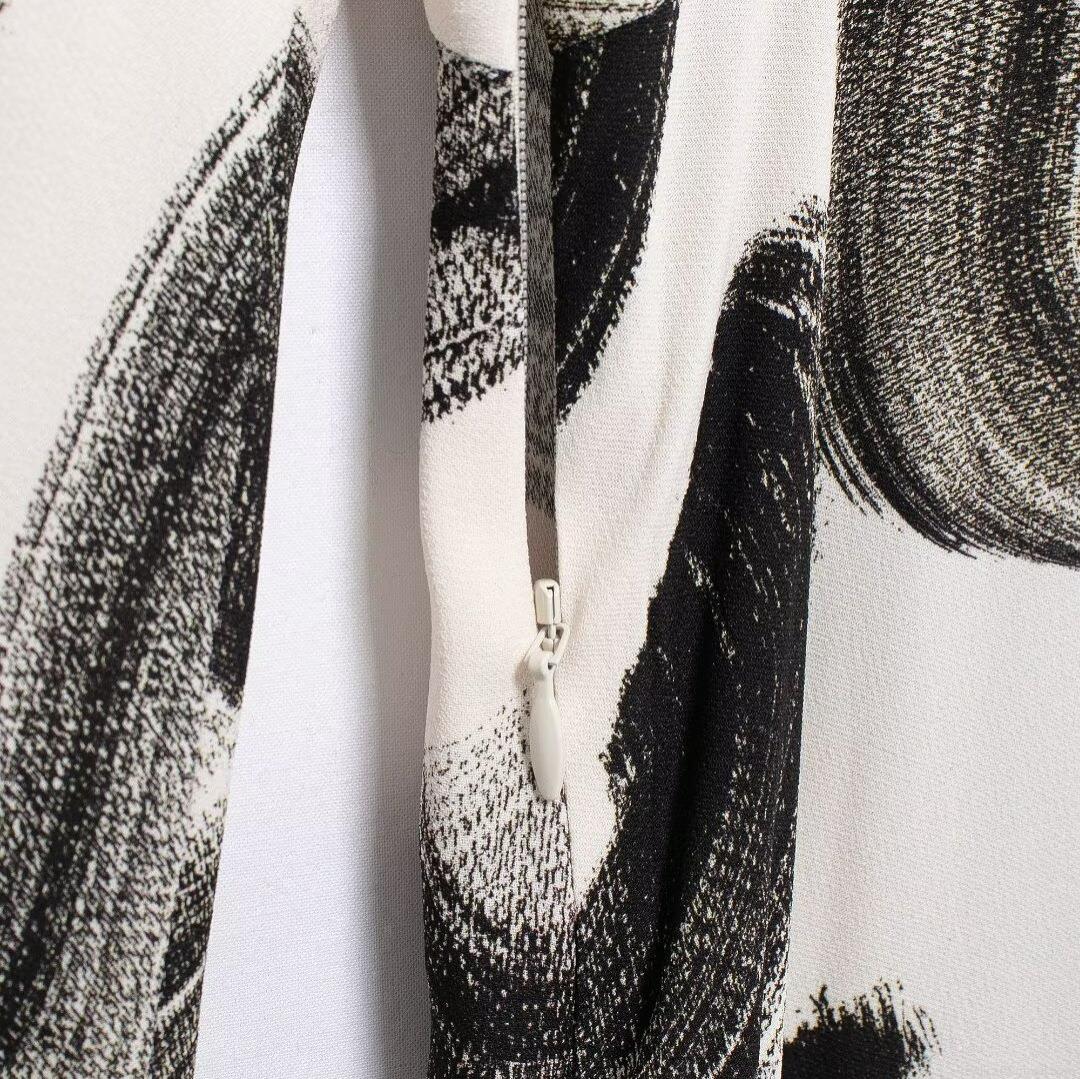 • Women Elegant 100% Polyester Maxi Dress Abstract Black White Brushstroke Print Round Neck Long Sleeve Loose Fit Casual Artistic Retro Long Skirt For Party Holiday