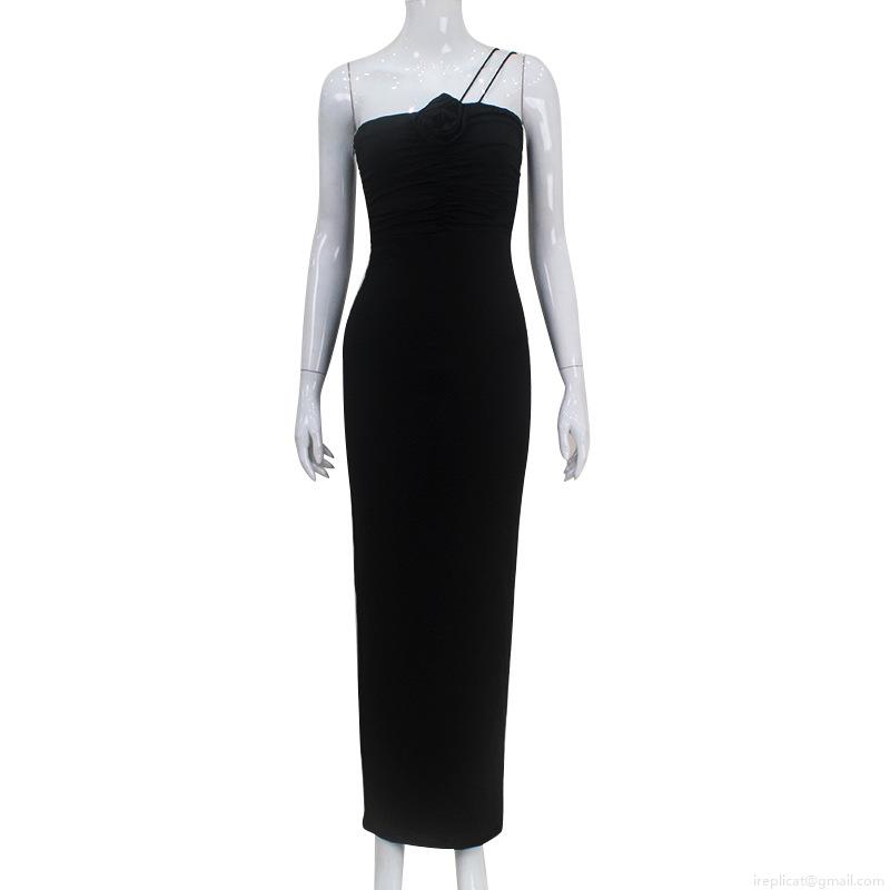 • Women Elegant 3D Rose Flower Ruched Maxi Dress Sexy Asymmetric Single Shoulder Bodycon Camisole Long Dress For Party Night Clubwear
