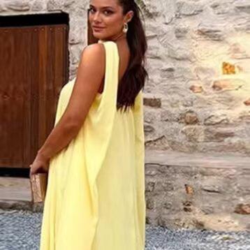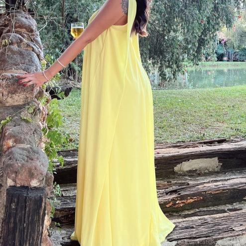 • Women Elegant Halter Neck Maxi Dress Solid Color Sleeveless Loose Chiffon Long Dress For Summer Vacation Evening Party Women Clothing