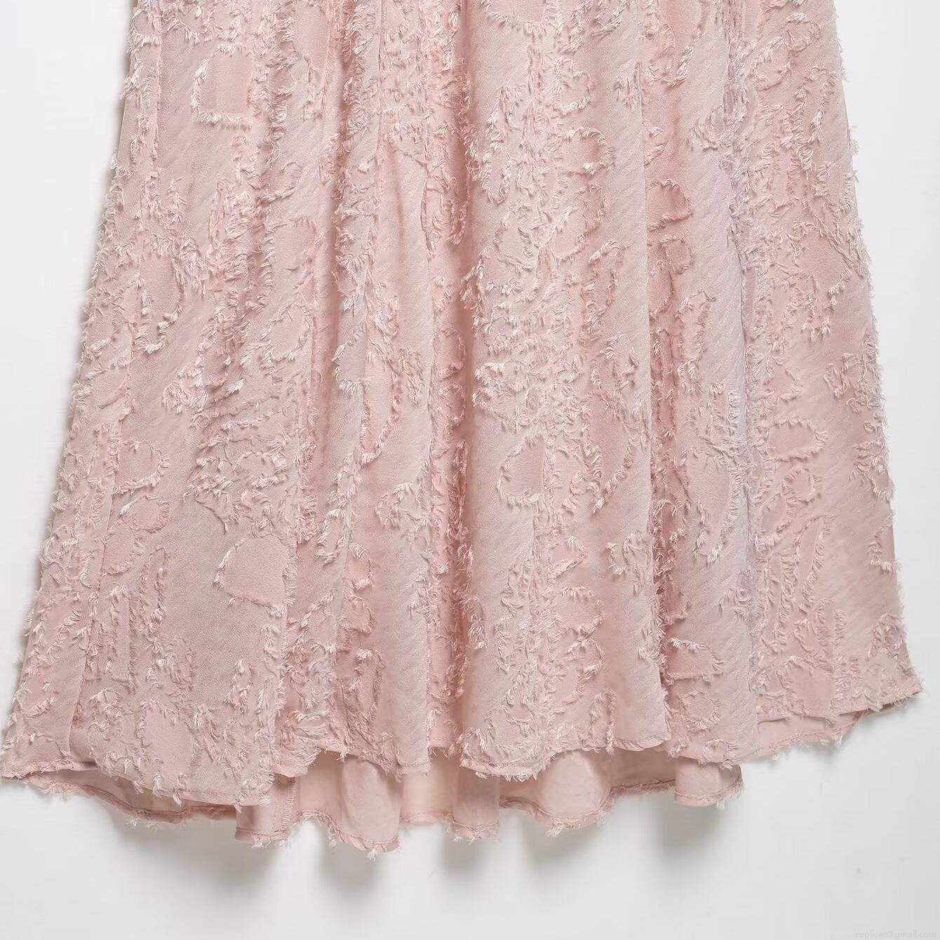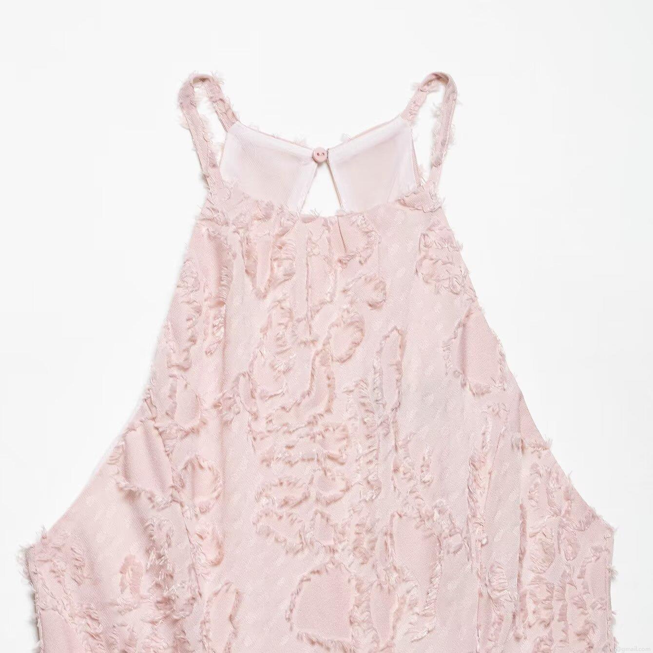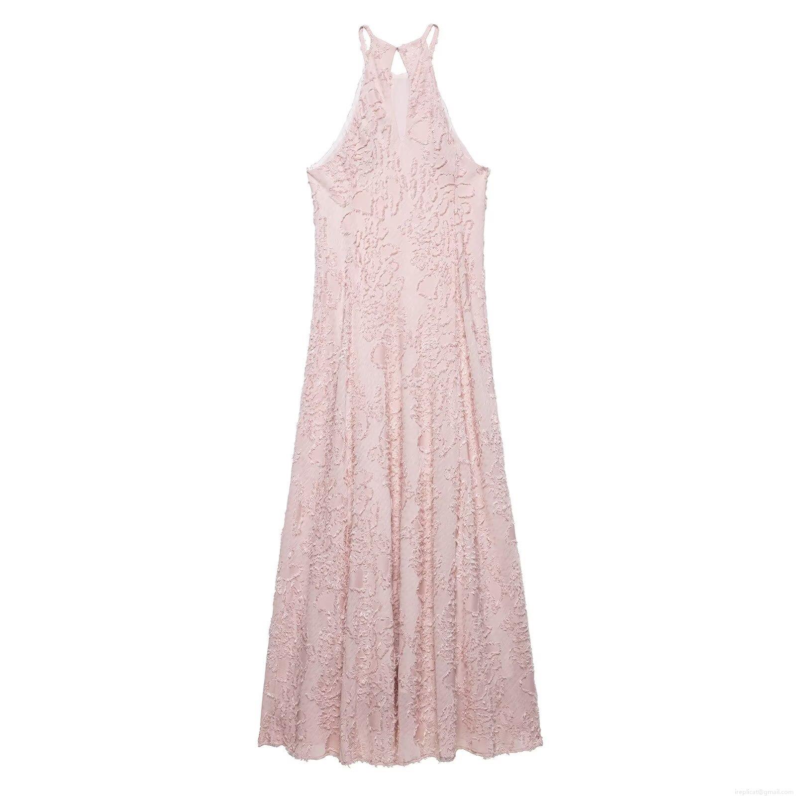 Women Elegant Halter Neck Maxi Dress Textured Jacquard Sleeveless Formal Evening Gown Pale Pink Flowy Long Party Dress For Special Occasion