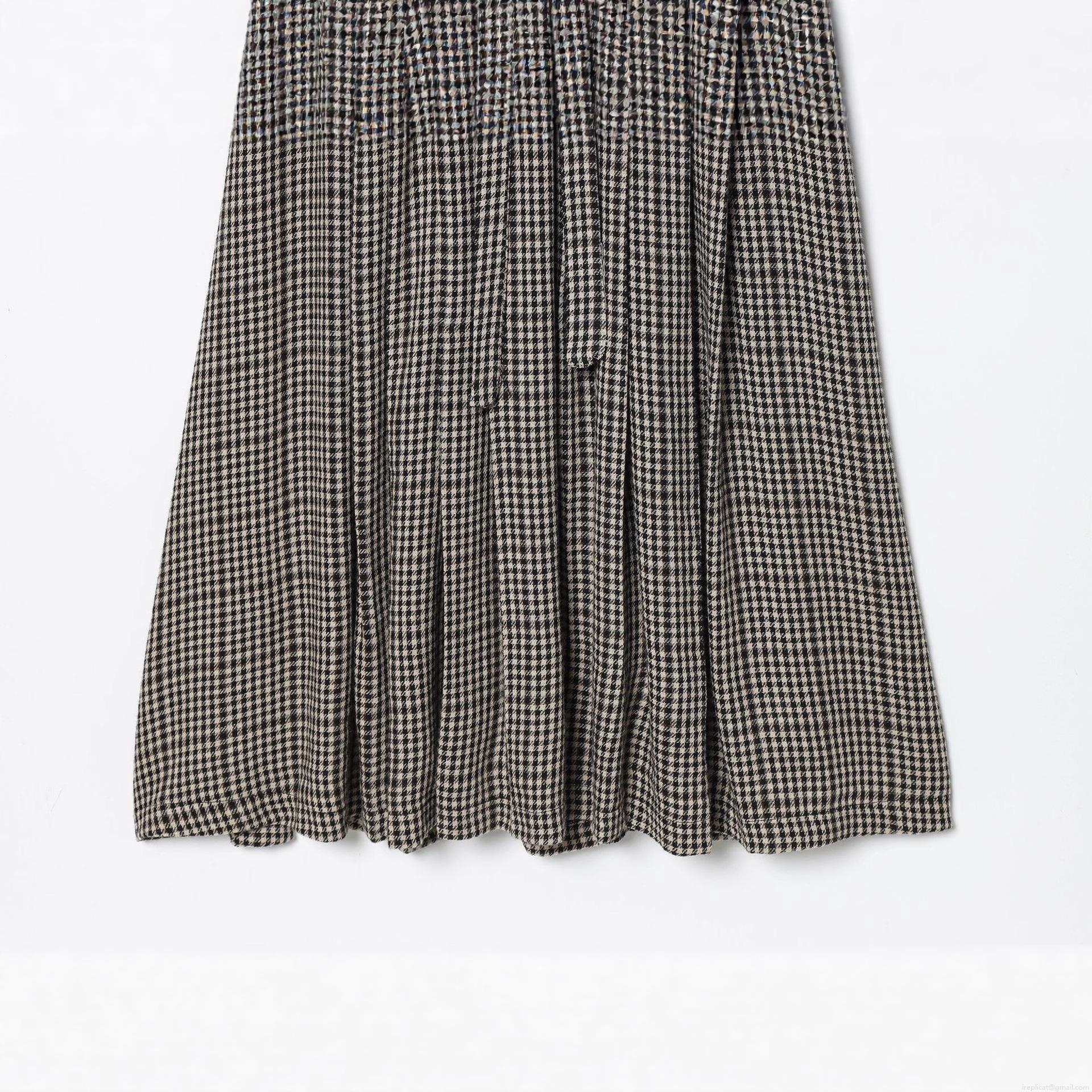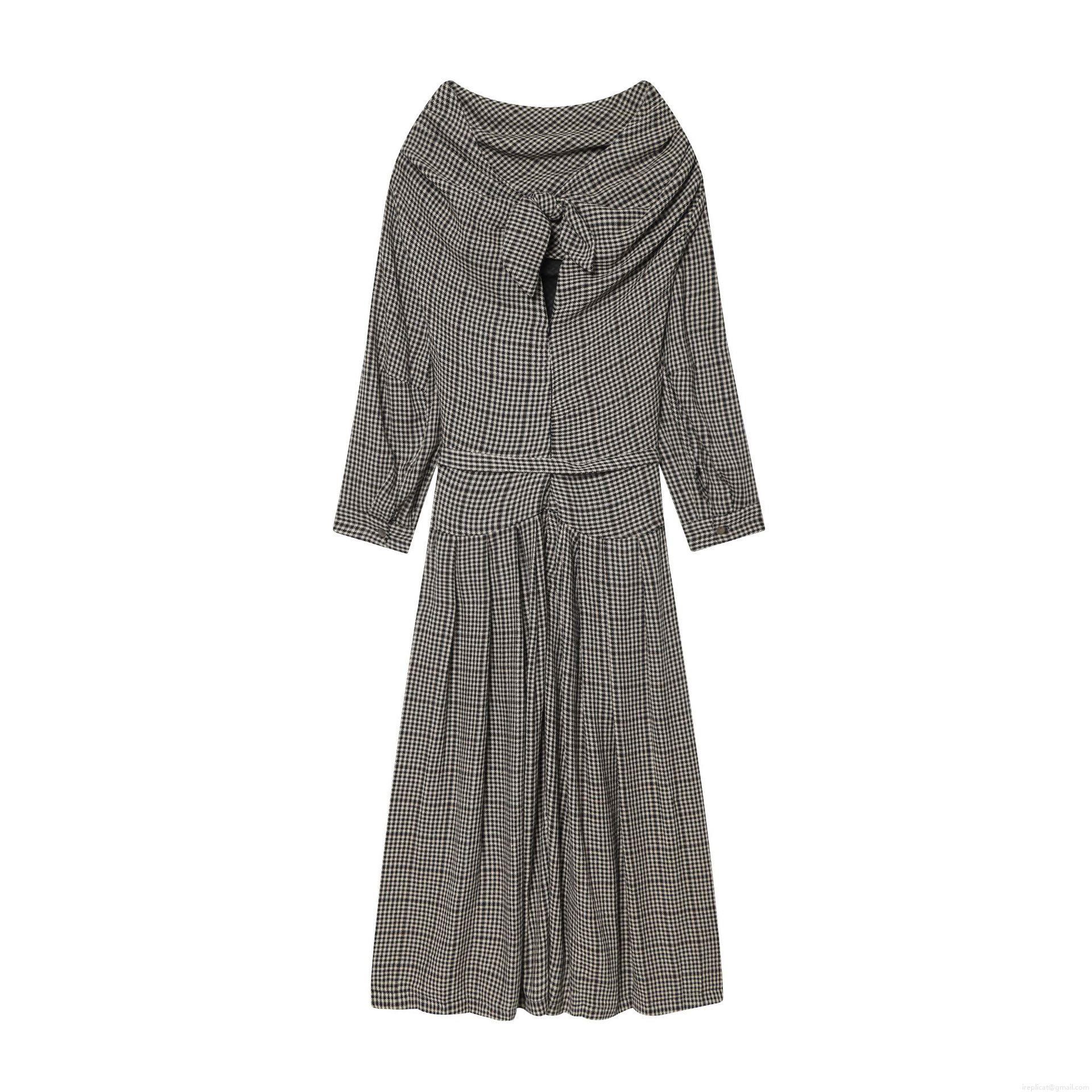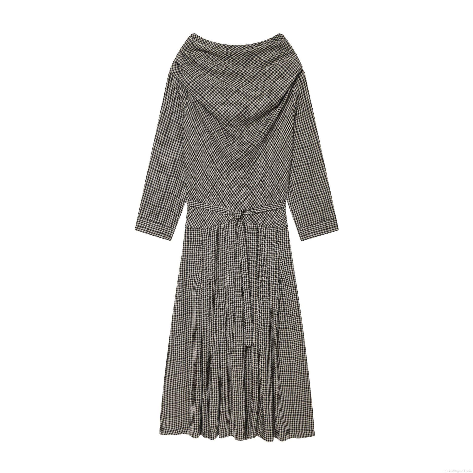 • Women Elegant Houndstooth Maxi Dress Long Sleeve V-Neck Lace-Up Waist Pleated A-Line Long Dress For Party Commute Evening Celebrity Style