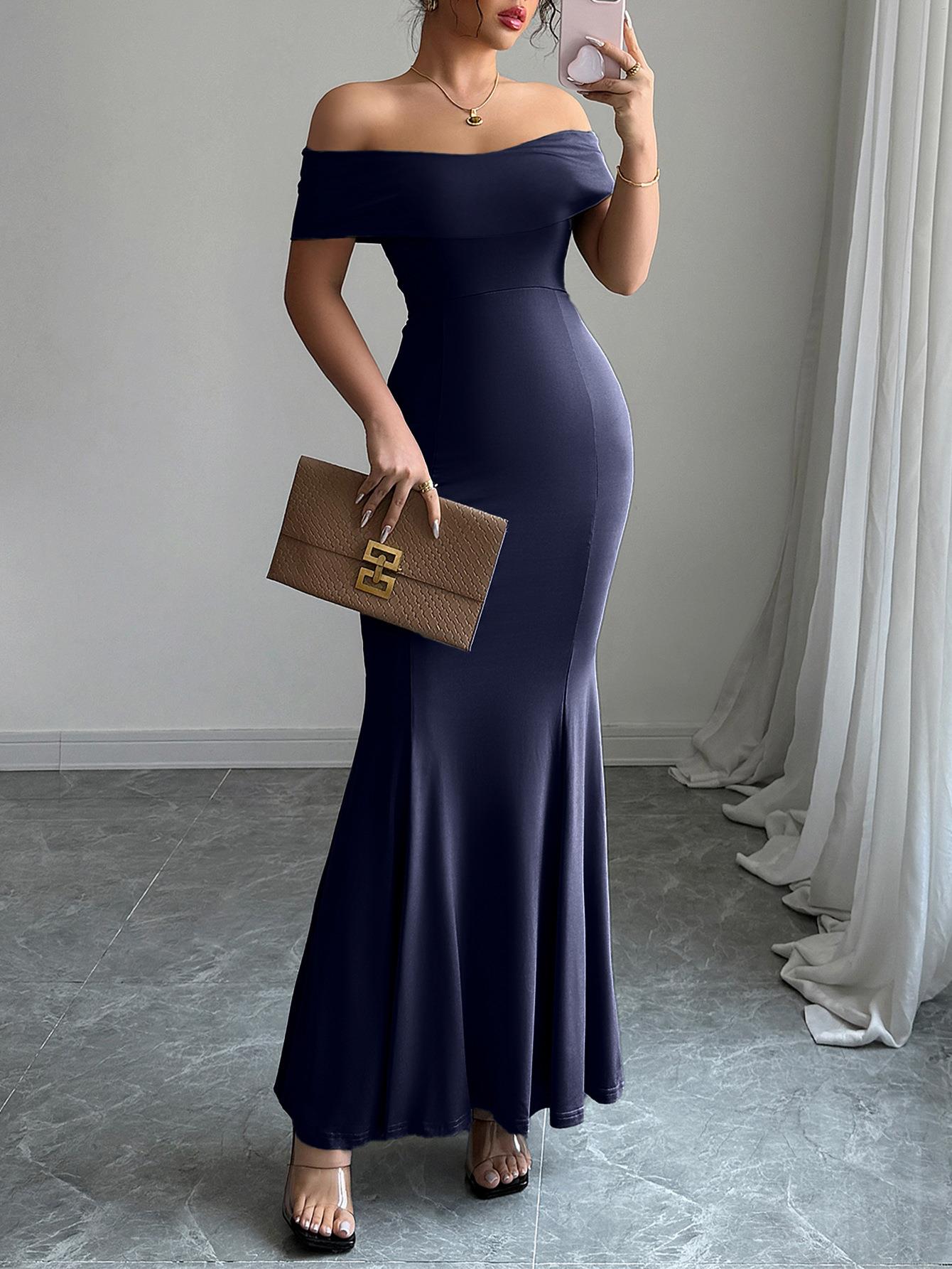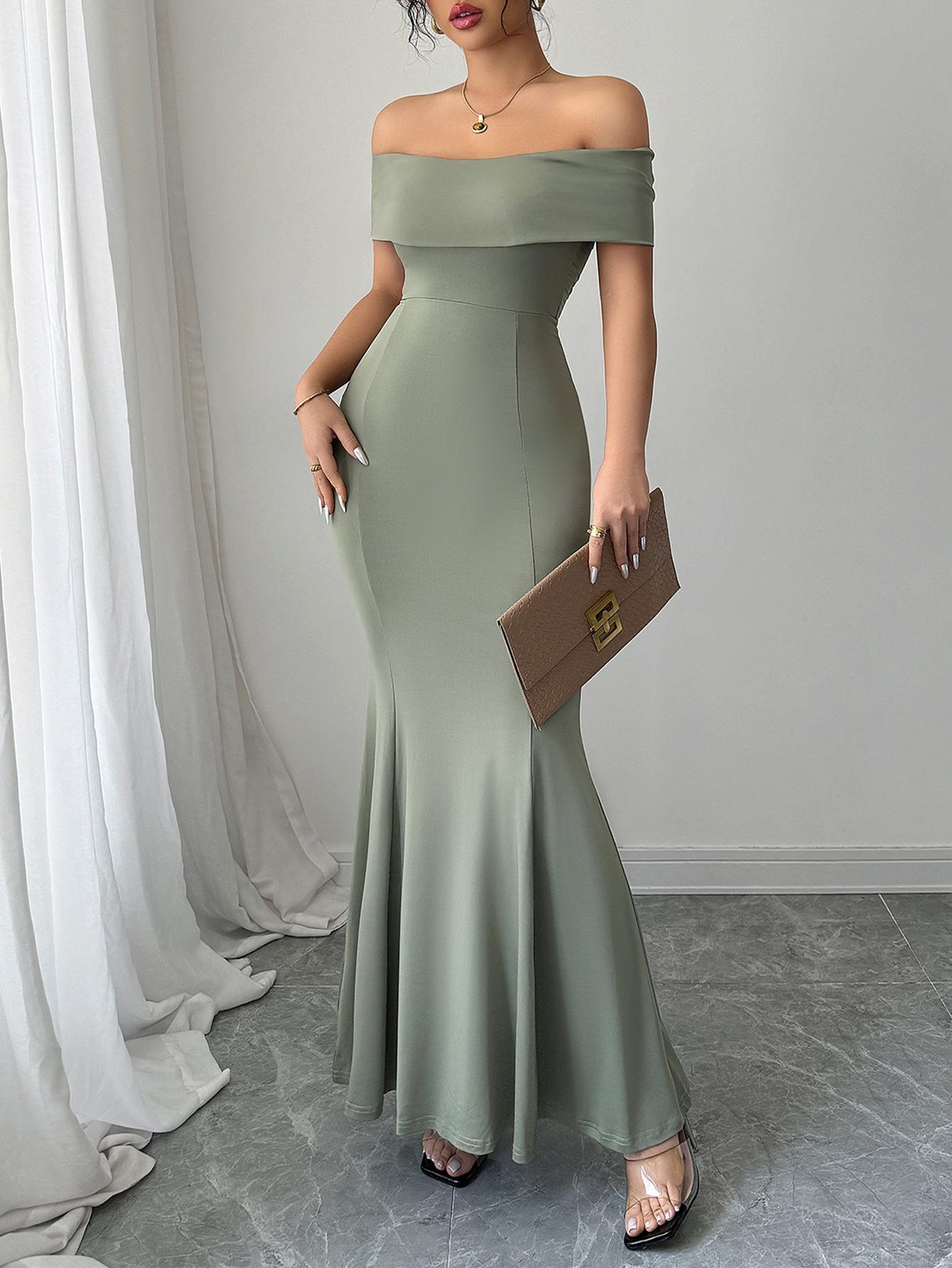 Solid Color, Off-shoulder, Fishtail Design, Slim Fit