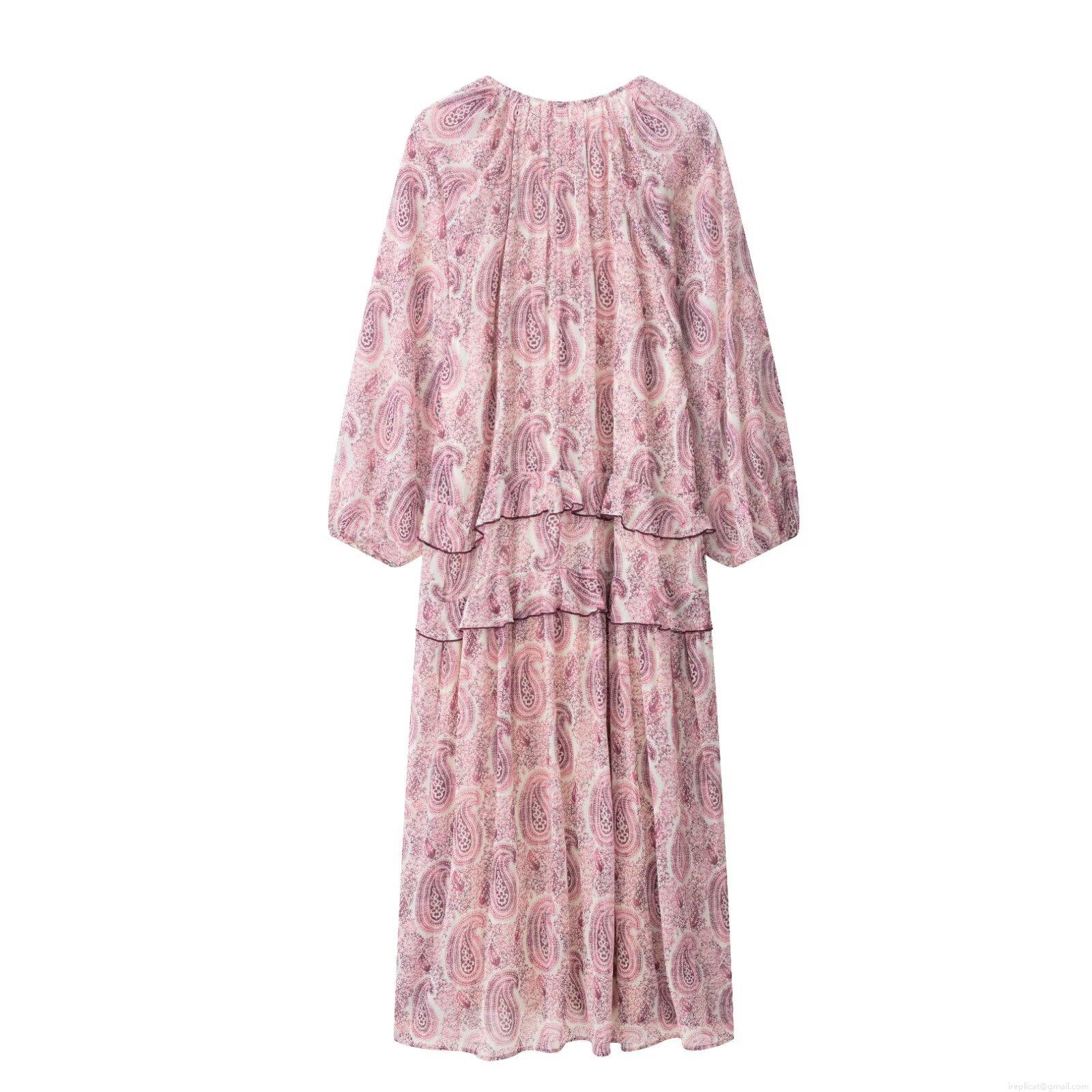 • Women Elegant Paisley Print Maxi Dress V-Neck Ruffle Long Sleeve Layered Polyester Chiffon Texture Dress Bohemian Style Flowy Party Evening Long Dress