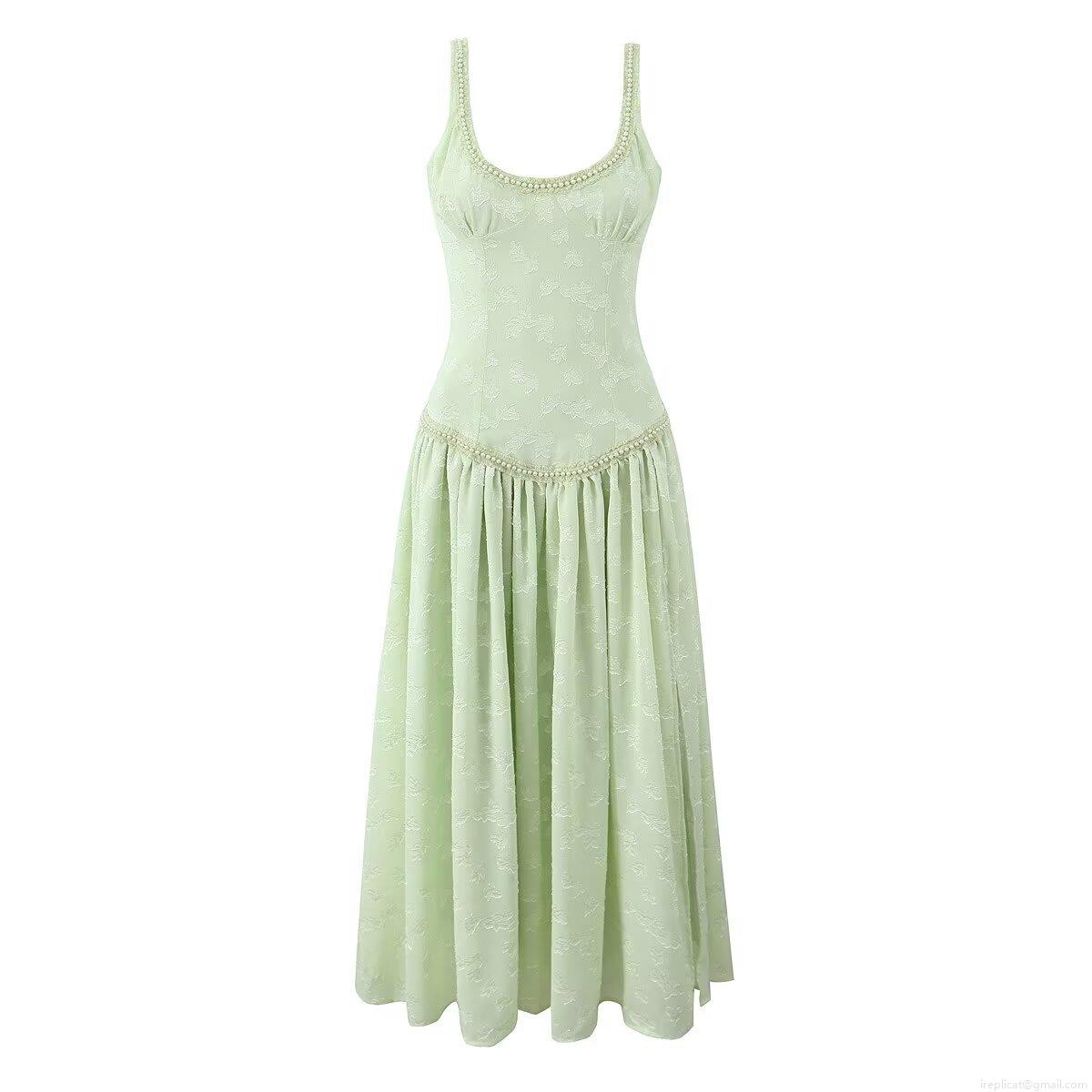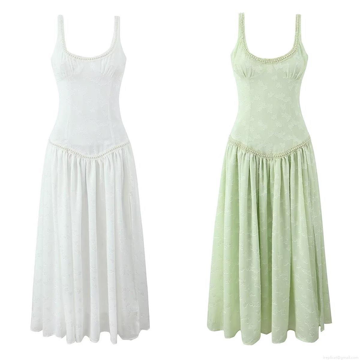 Flowers, Backless, Side Fork, Pearl Decoration, Jacquard Technique, Dark Pattern Jacquard