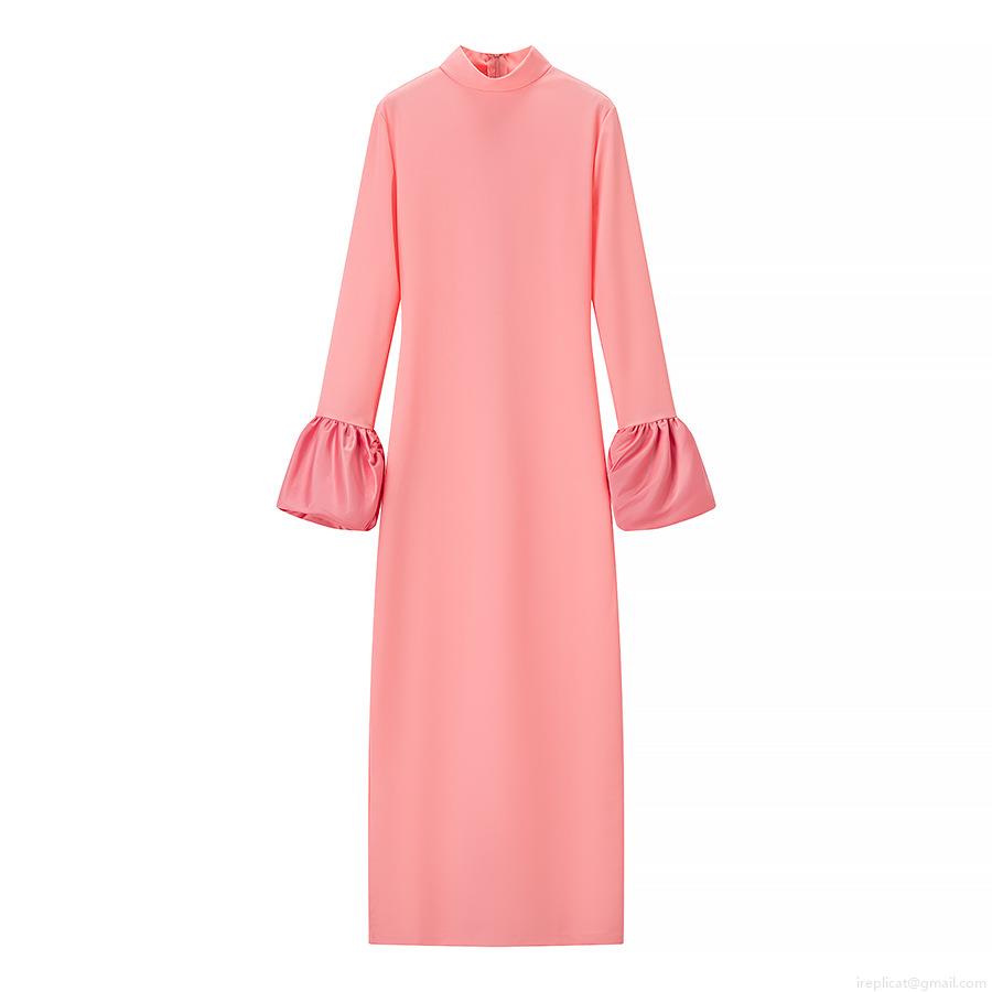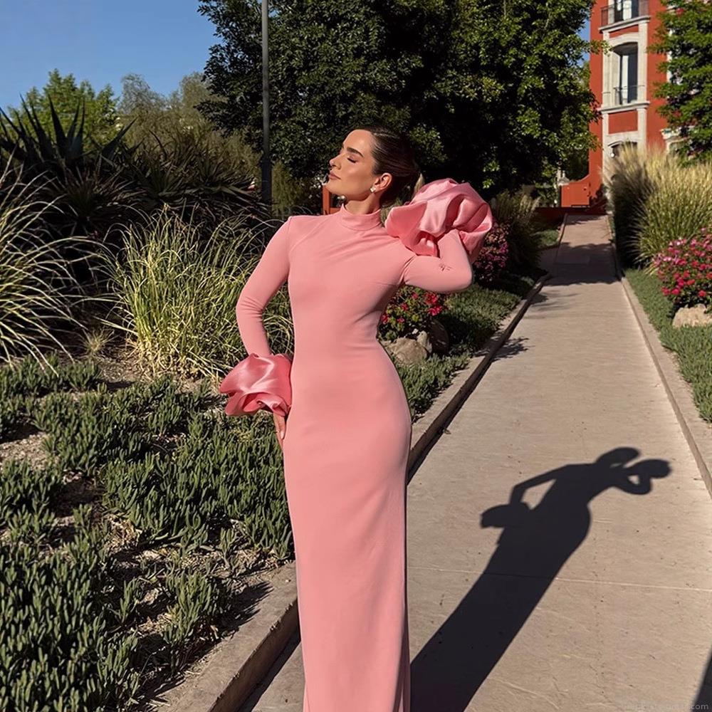 Women Elegant Pink Bodycon Maxi Dress Satin Puff Sleeve High Neck Evening Gown Floor Length Cocktail Party Prom Slim Fit Long Dress For Ladies