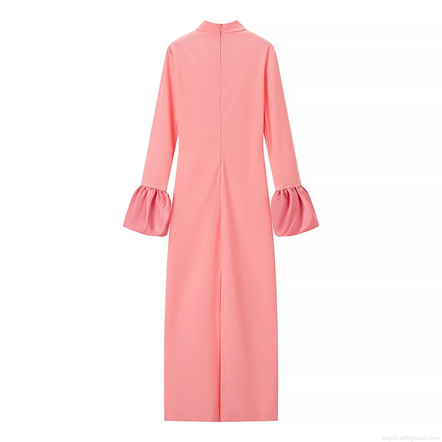 • Women Elegant Pink Bodycon Maxi Dress Satin Puff Sleeve High Neck Evening Gown Floor Length Cocktail Party Prom Slim Fit Long Dress For Ladies
