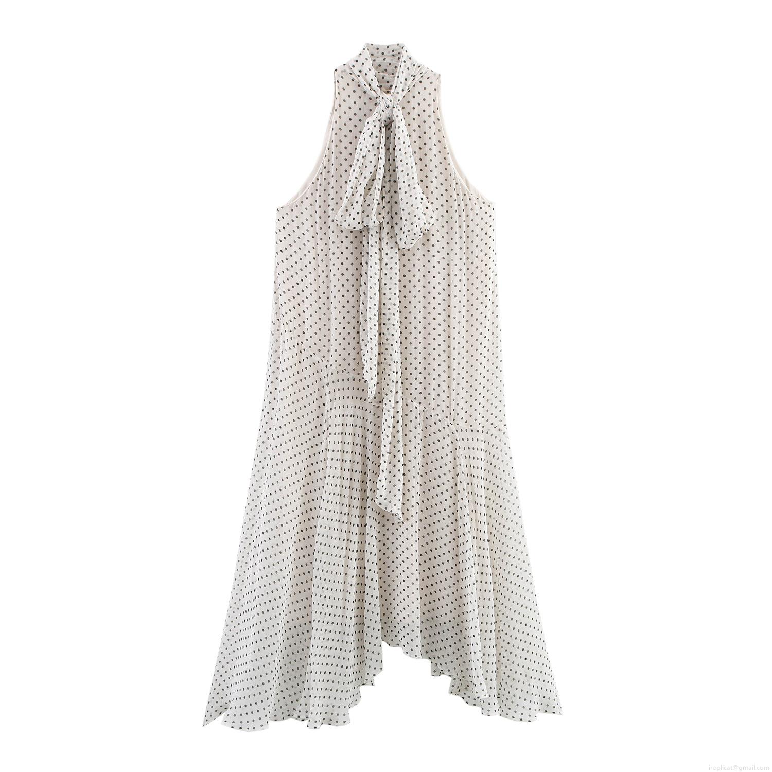 • Women Elegant Polka Dot Halter Neck Maxi Dress Chiffon Feel High Waist Sleeveless Irregular Hem A-Line Long Swing Dress For Summer Party Vacation