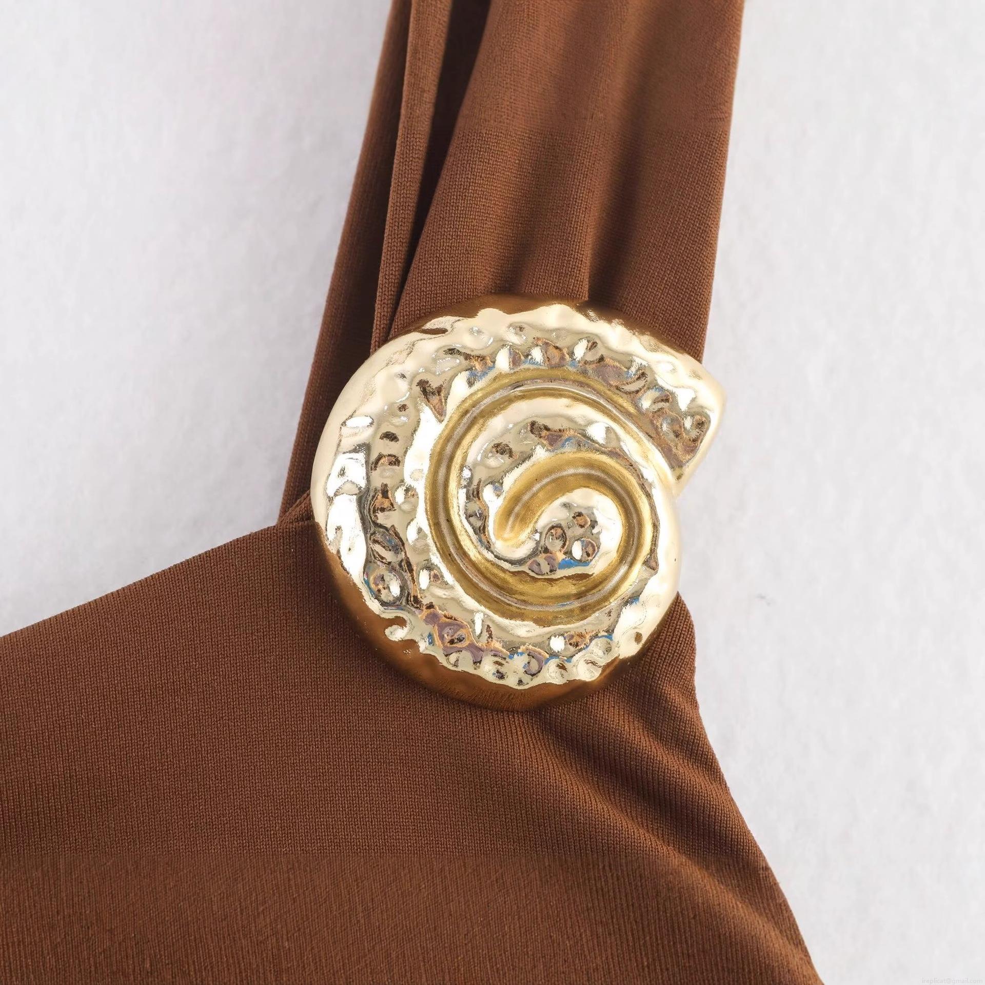 Women Elegant Ruched Maxi Dress Polyester Slim Fit Sling Long Dress With Metallic Shell Decor For Party Vacation Evening Dress