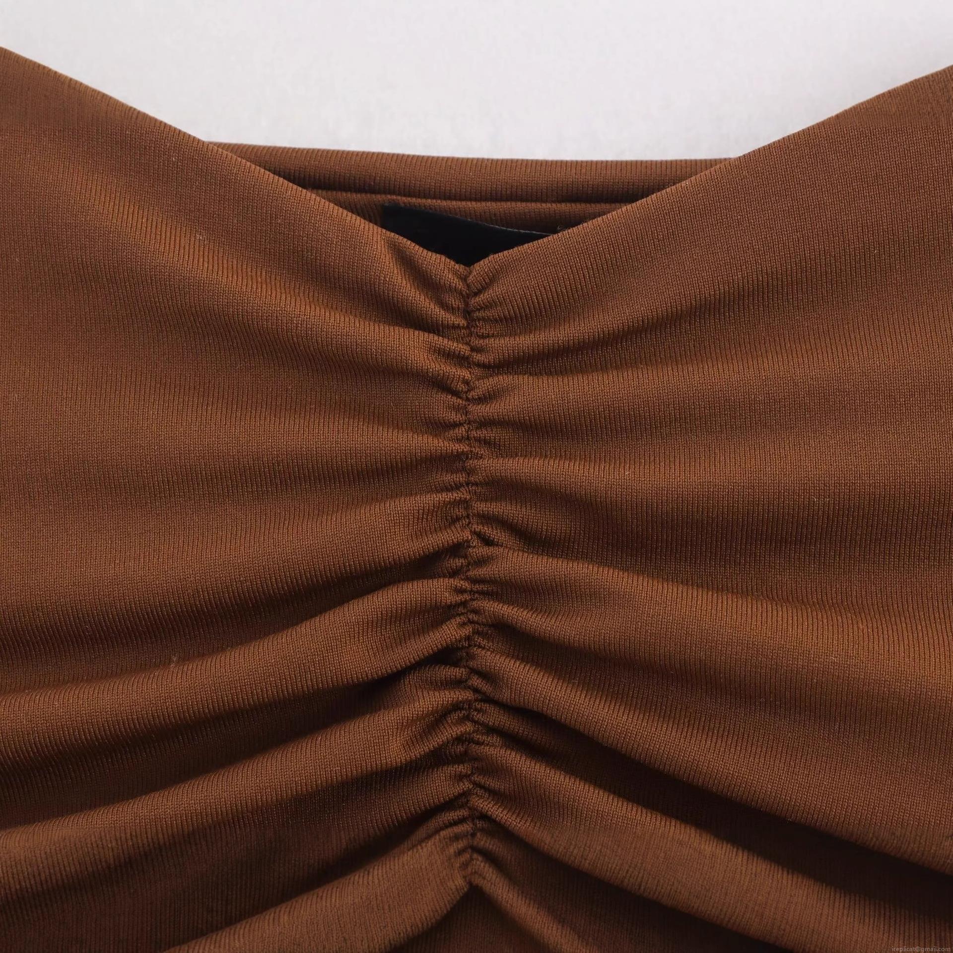 • Women Elegant Ruched Maxi Dress Polyester Slim Fit Sling Long Dress With Metallic Shell Decor For Party Vacation Evening Dress
