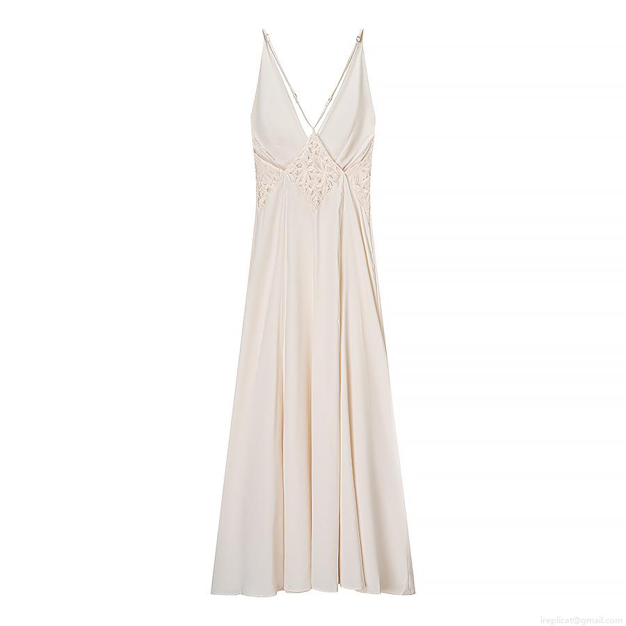 • Women Elegant Satin Camisole Maxi Dress Lace Patchwork V Neck Sleeveless Backless Solid Color Silk Like Long Gown For Wedding Party Evening Date Summer