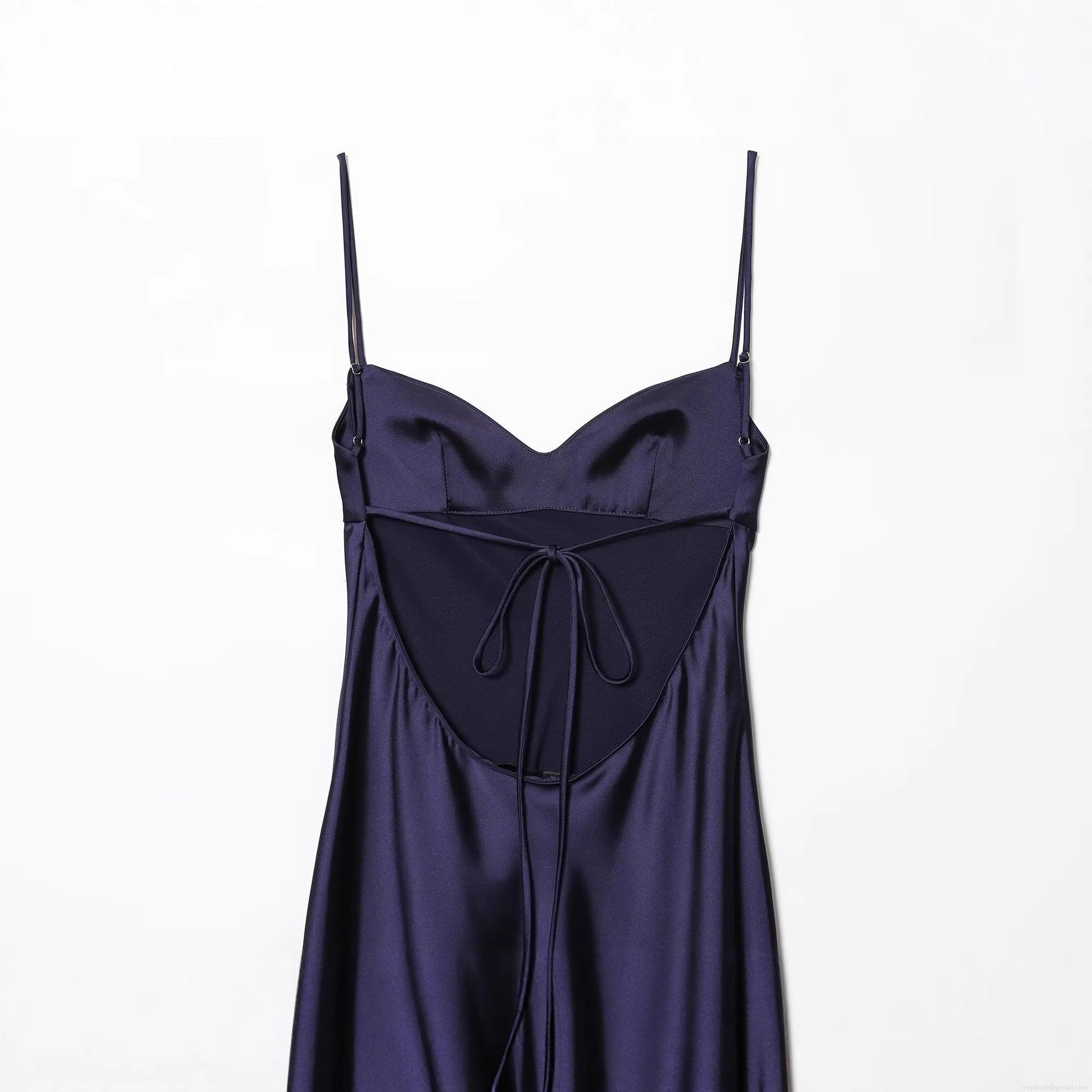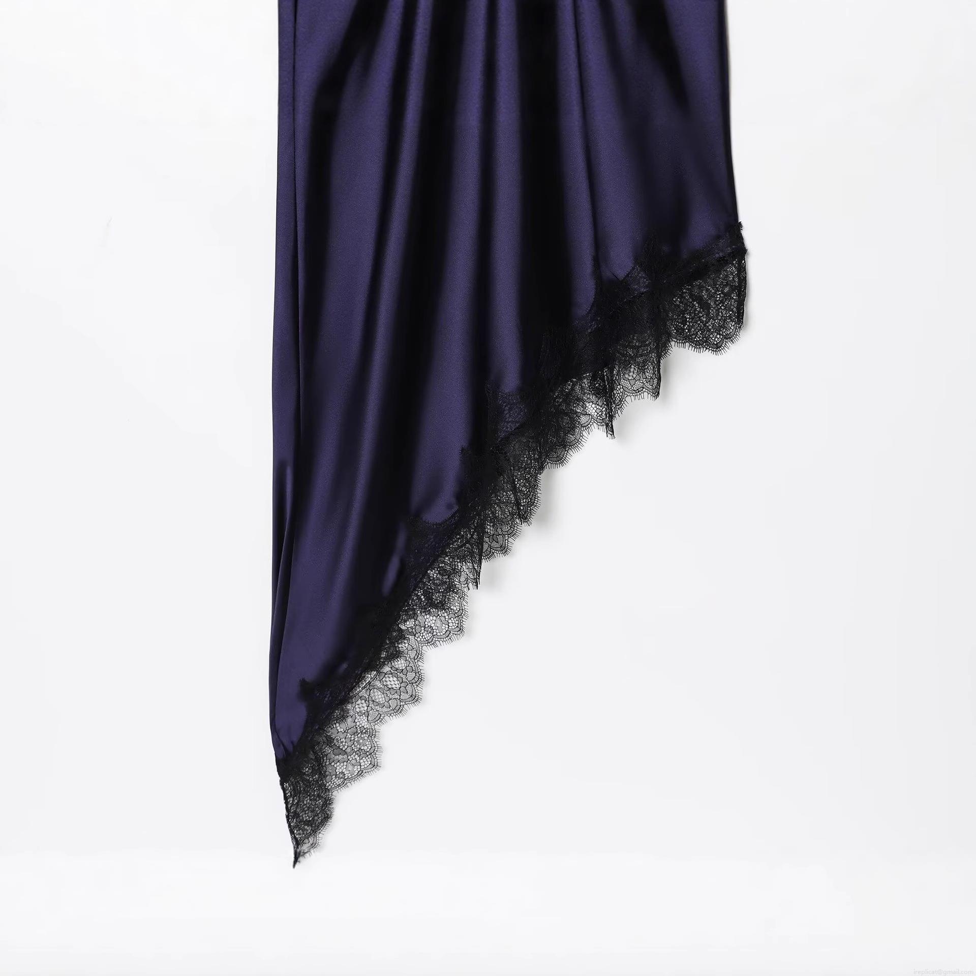 • Women Elegant Satin Lace Patchwork Maxi Dress Sexy Backless Deep V Neck Cami Dress Cross Tie Up Asymmetrical Hem Party Evening Long Dress