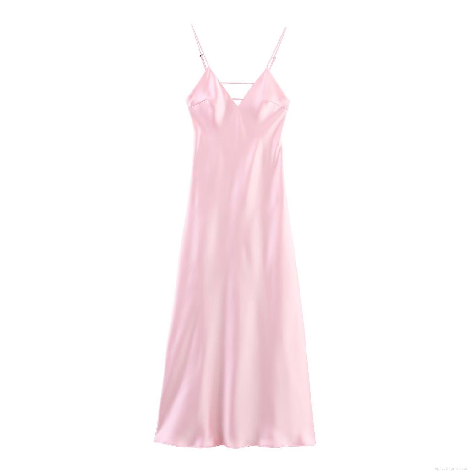 Solid Color, V-neck, Satin Texture, Thin Straps, Backless Cross
