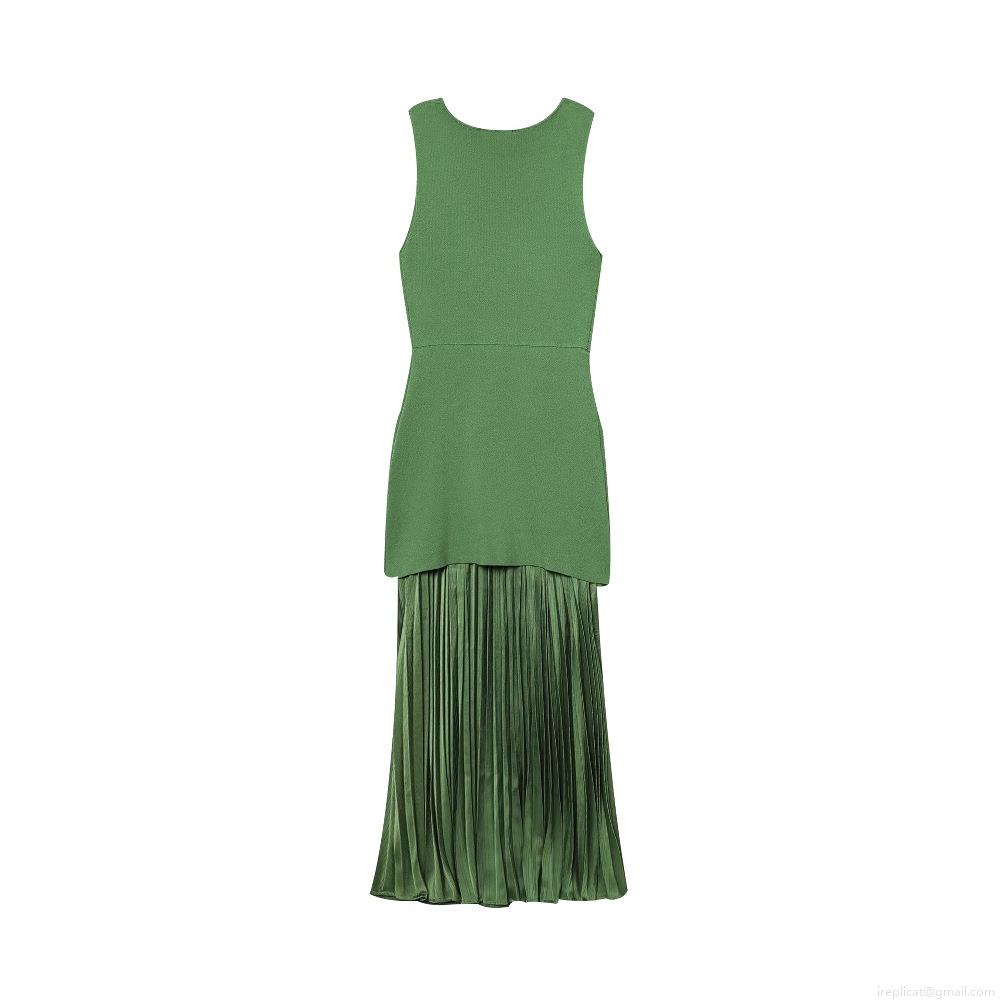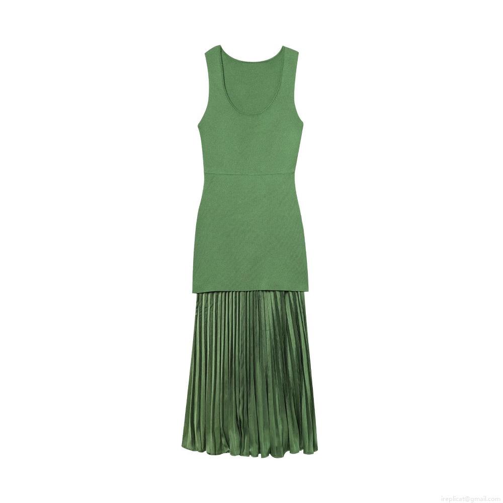 Women Elegant Sleeveless Knitted Satin Patchwork Pleated Maxi Dress Sexy U-Neck Slim Fit Long Evening Dress For Party Banquet Cocktail Wedding Guest Lady Socialite Style Clothing