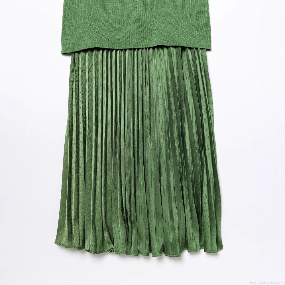 • Women Elegant Sleeveless Knitted Satin Patchwork Pleated Maxi Dress Sexy U-Neck Slim Fit Long Evening Dress For Party Banquet Cocktail Wedding Guest Lady Socialite Style Clothing