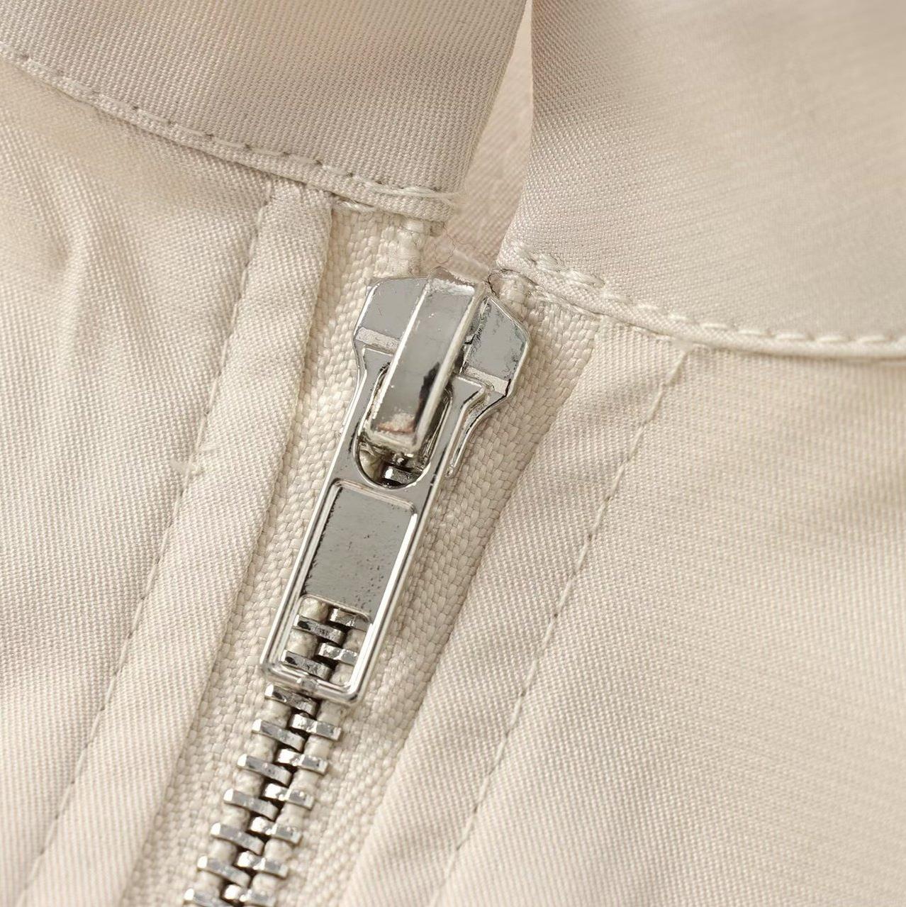 Solid Color, Half Zipper, Waist shaping, Pleats, Stand-up Collar
