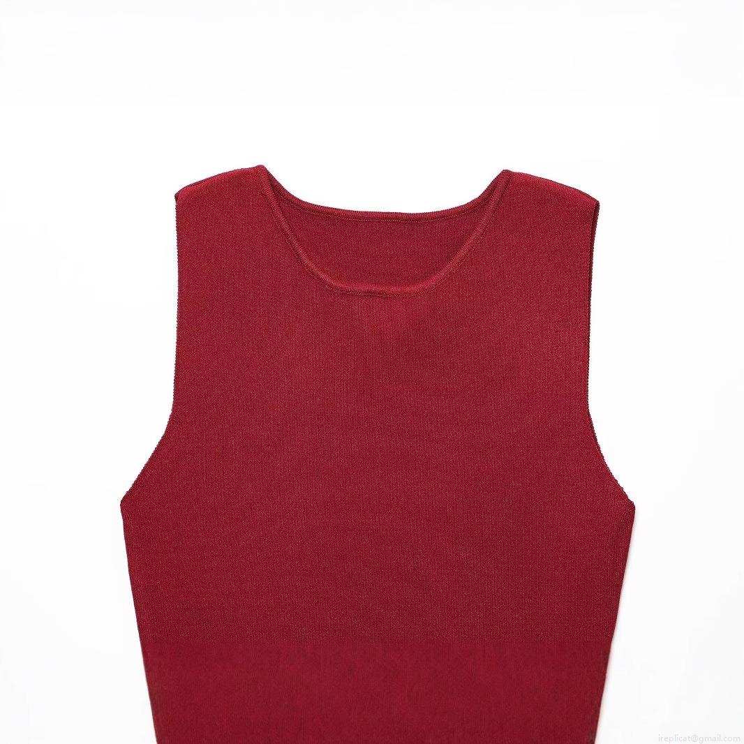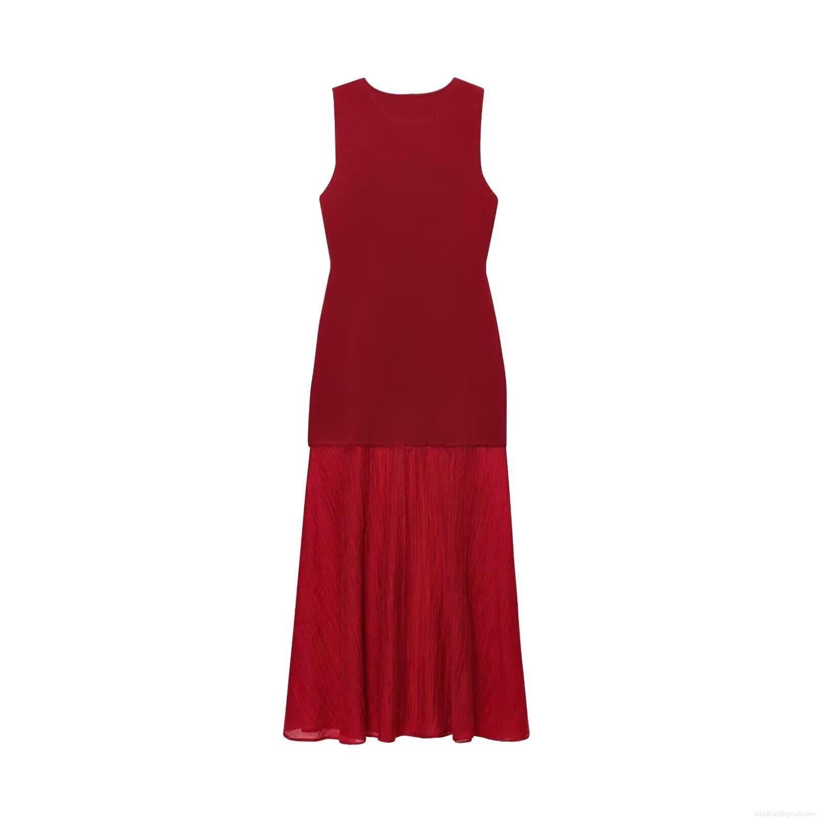 • Women Elegant Sleeveless Maxi Dress Knitted Pleated Patchwork Round Neck Long Dress For Party Dating Office Lady Casual Streetwear