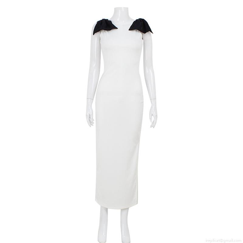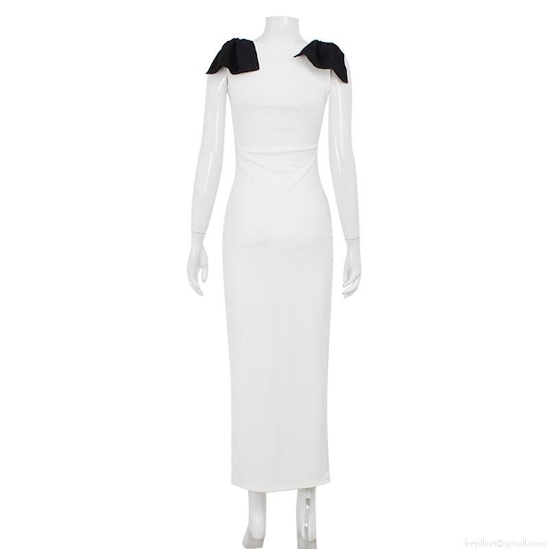 • Women Elegant Sleeveless Round Neck Maxi Dress With Large Black Bow Decoration Slim Fit Bodycon Split Hem Evening Party Wedding Guest Dress French Style Long Gown
