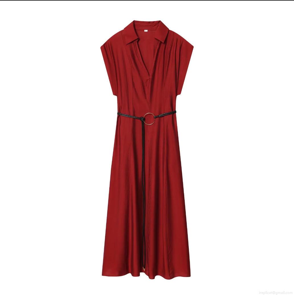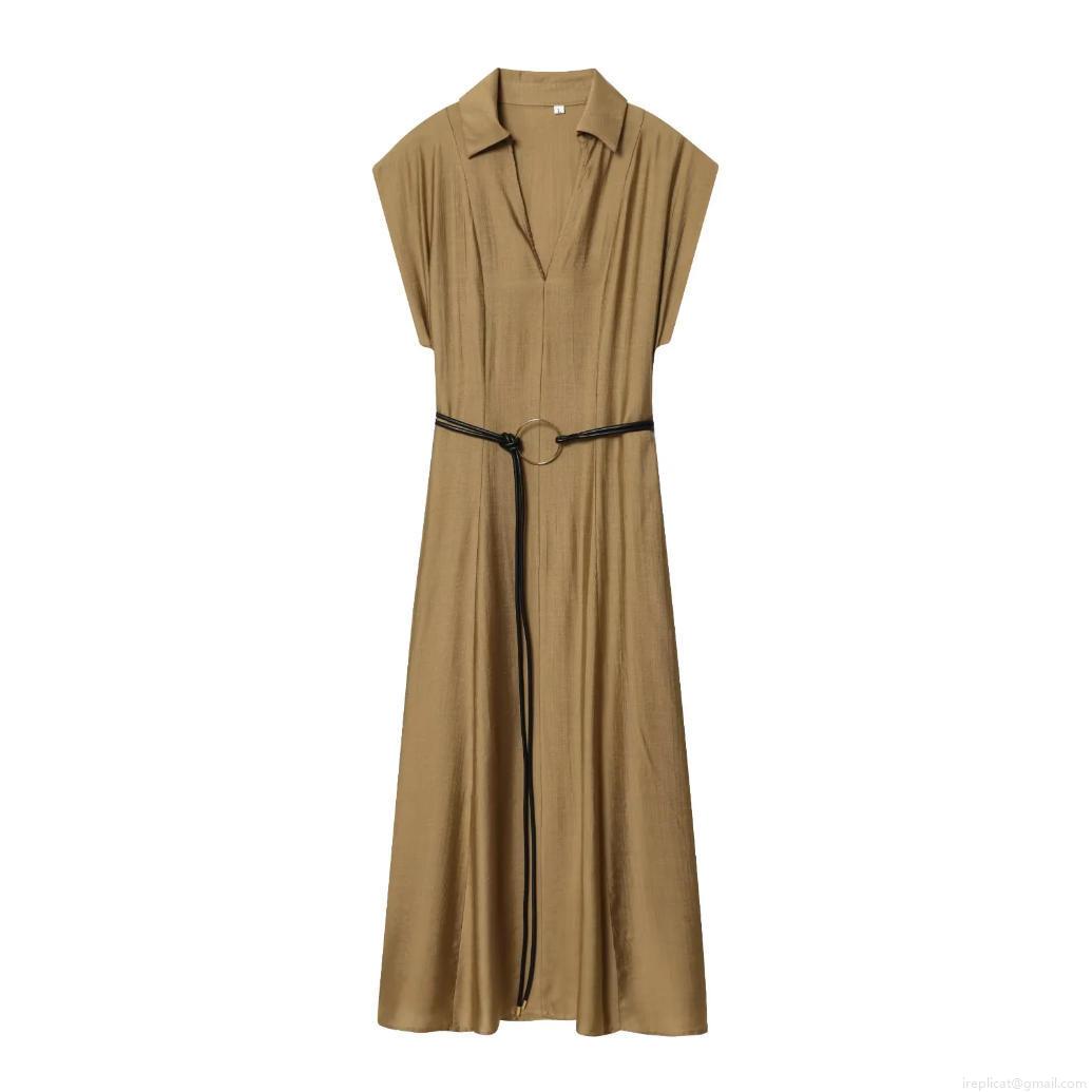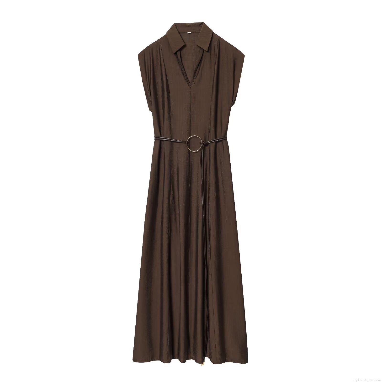 Solid Color, Belt, Sleeveless, A-line Skirt, Metal Ring Buckle, Shirt Collar