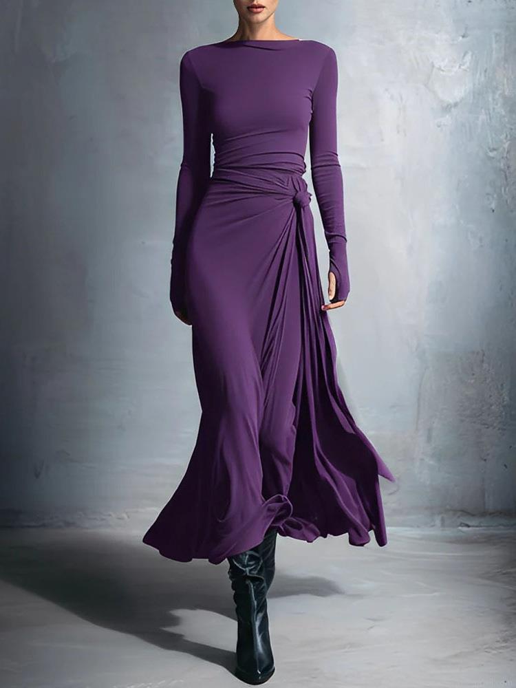 Solid Color, Knot Decoration, Side Slits, Body Wrap Design, Fingerhole Cuffs, Pleats And Pleats