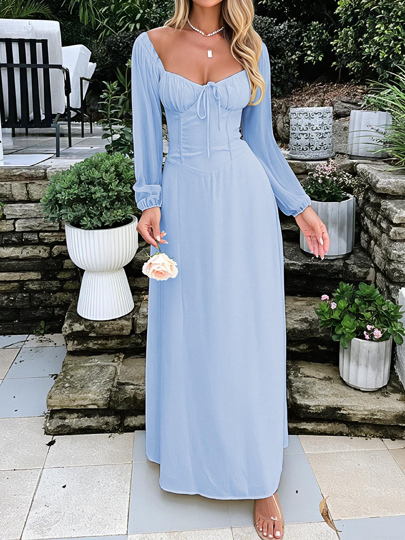 • Women Elegant Square Neck Lace-up Maxi Dress Long Sleeve Backless Strappy Solid Color Polyester Blend A-Line Long Dress For Party Wedding Vacation Evening Clubwear