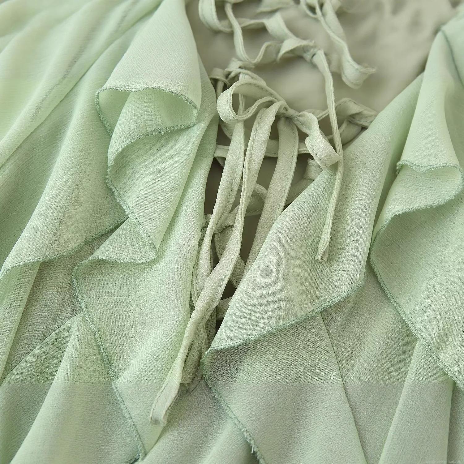 Solid Color, Pleats, Ruffles, Lace, Stacked, Bell Sleeves