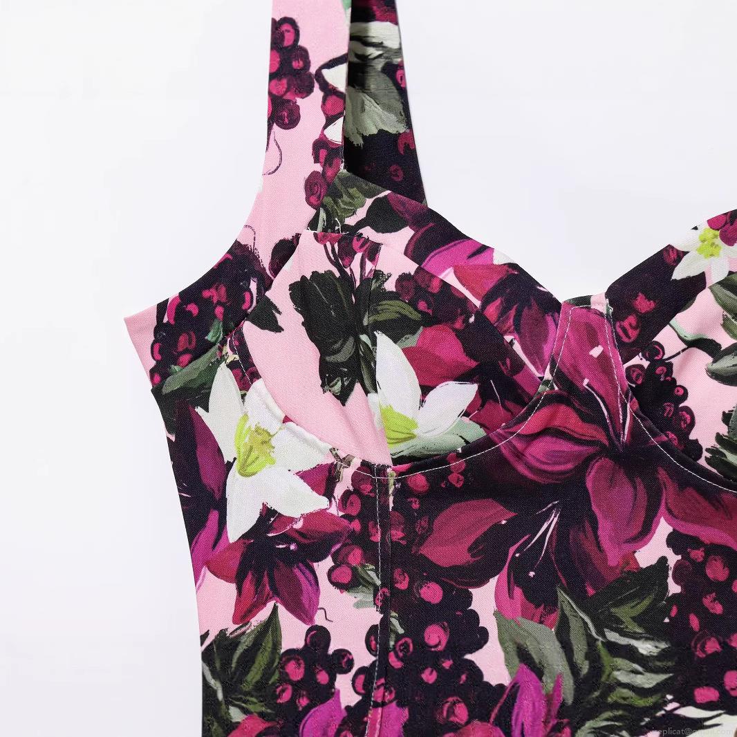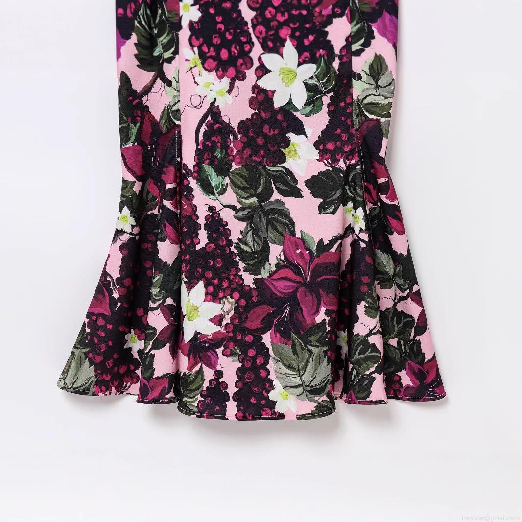 • Women Elegant V-Neck Floral Grape Print Camisole Dress Summer Sleeveless Bodycon Mermaid Hem Midi Dress For Beach Vacation Party Polyester Sundress