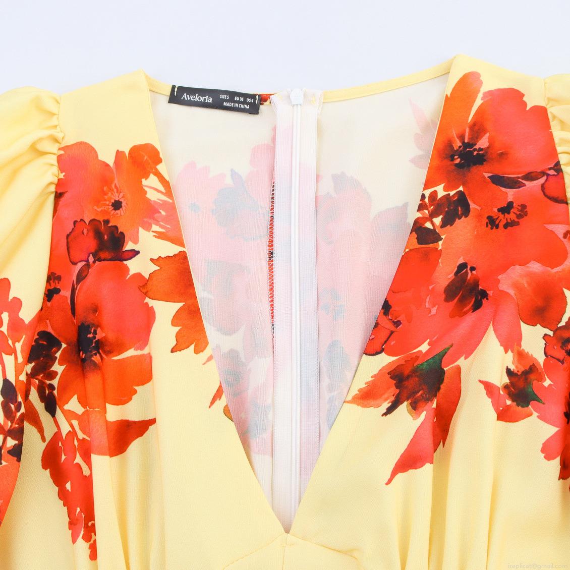 Plants And Flowers, Printing, Zipper, V-neck, High-waisted