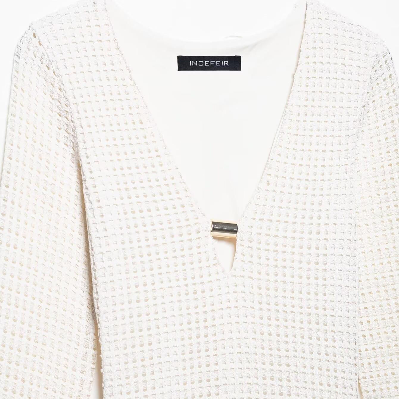 Solid Color, Hollow Out, V-neck, Crochet, Metal Decoration