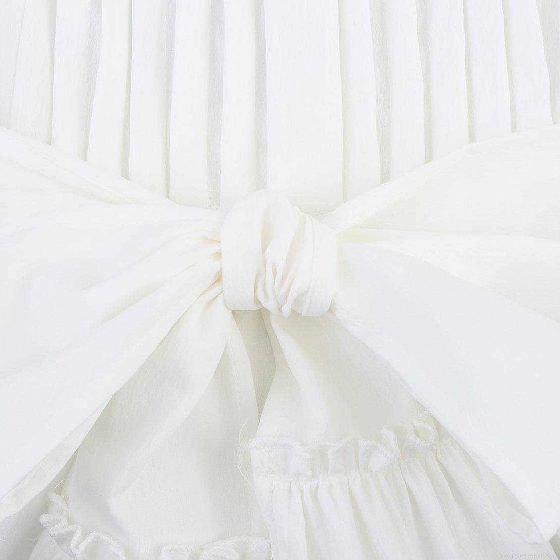 Women Elegant White Polyester Maxi Dress Square Neck Sleeveless Tiered Cake Dress With Bow Tie Waist Pleated Long Dress For Summer Vacation Party Ladies