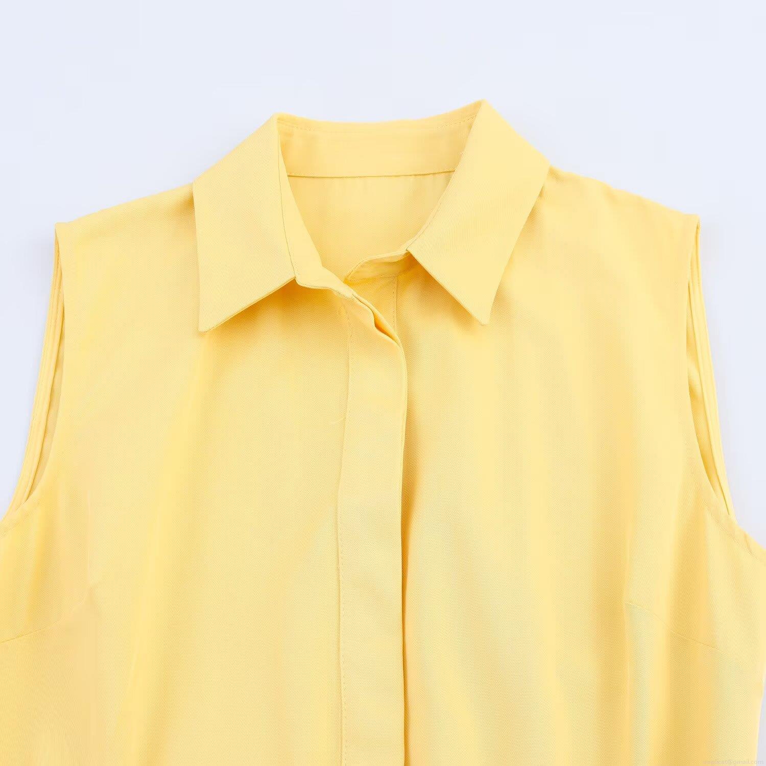 • Women Elegant Yellow Sleeveless Shirt Dress With Detachable Belt Solid Color Polyester Maxi A-Line Dress For Summer Party Commute Formal Lady Streetwear