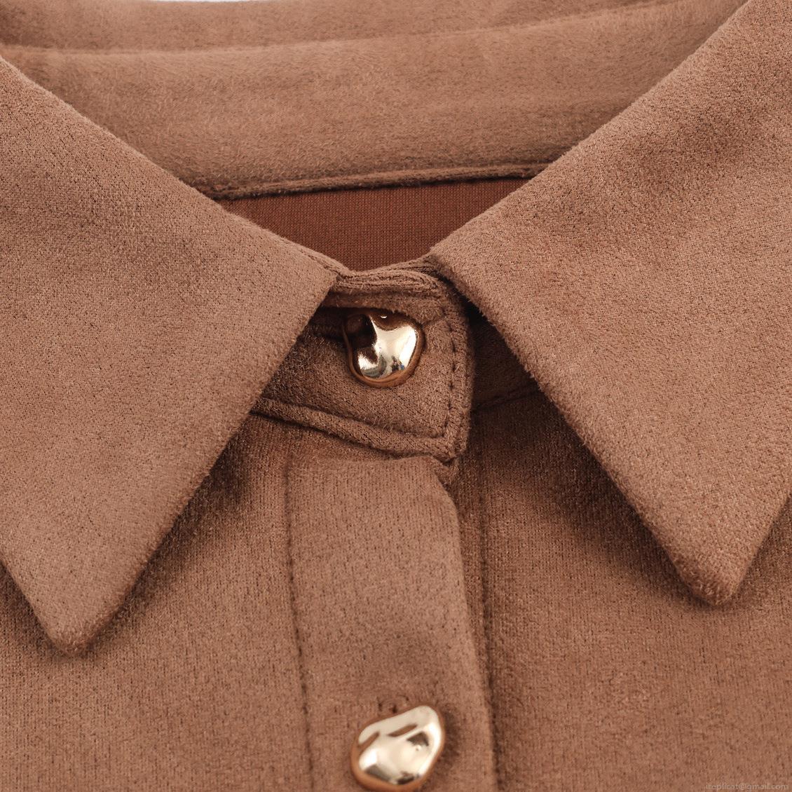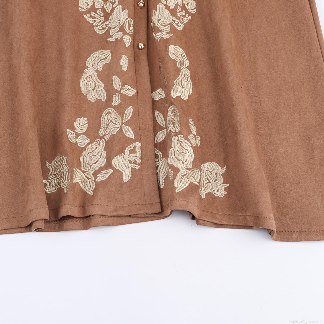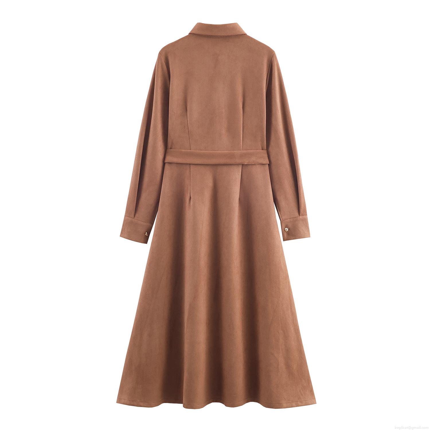 • Women Fall Winter Suede Floral Embroidery Shirt Maxi Dress Elegant Long Sleeve Tie Waist Button Down Vintage Long Dress