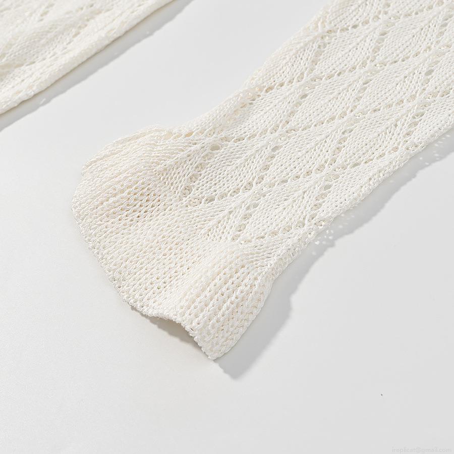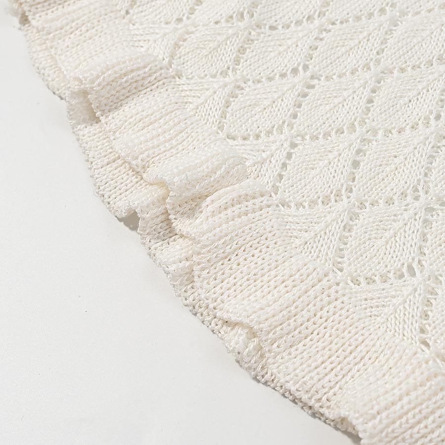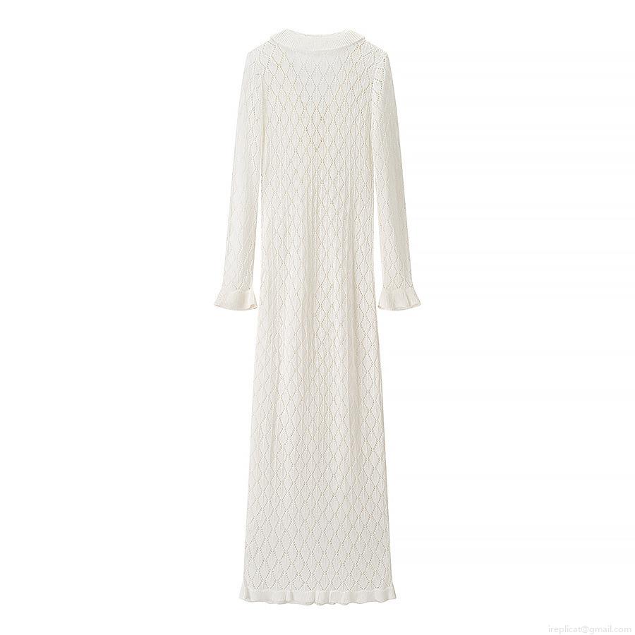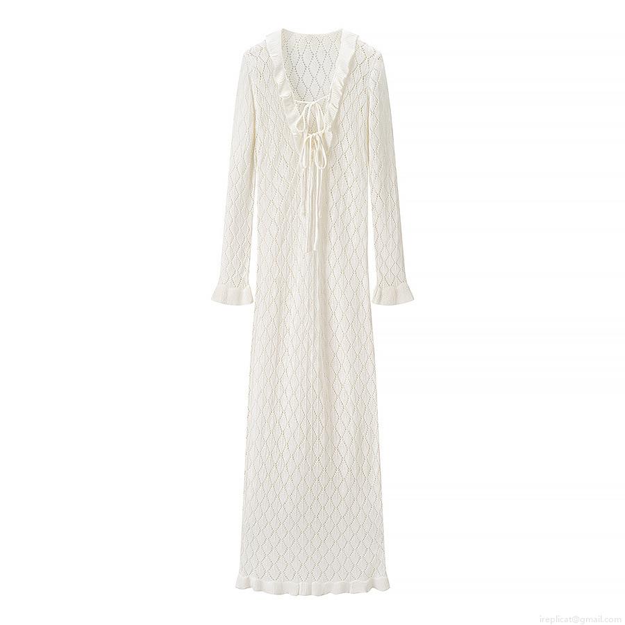 • Women Fashion V-Neck Knitted Hollow Out Maxi Dress Long Sleeve Ruffle Lace-Up White Sexy Crochet Beach Long Dress For Summer Vacation Women Clothing