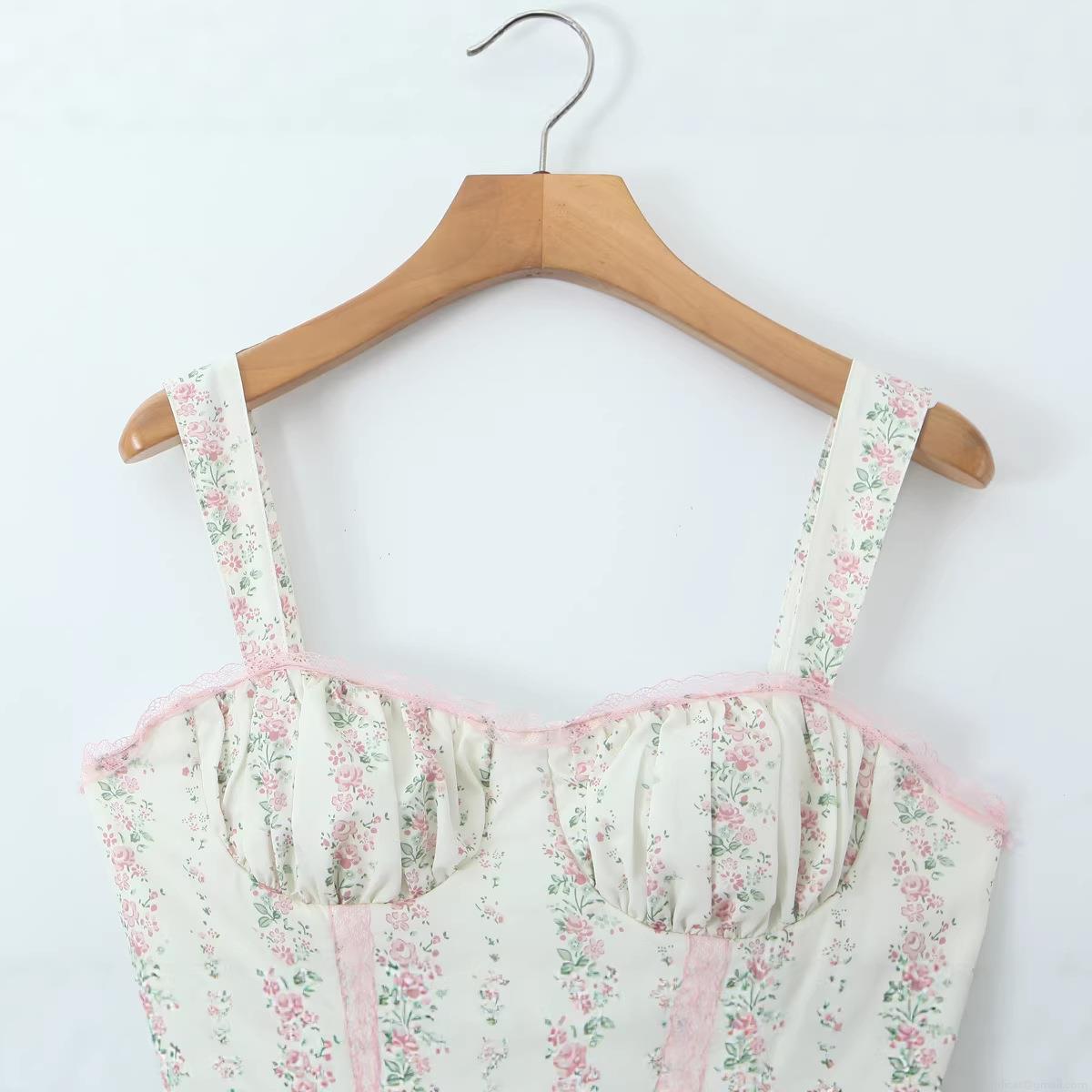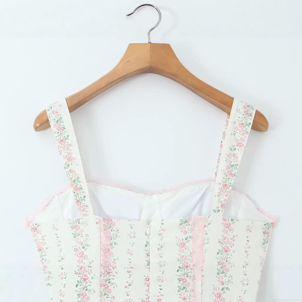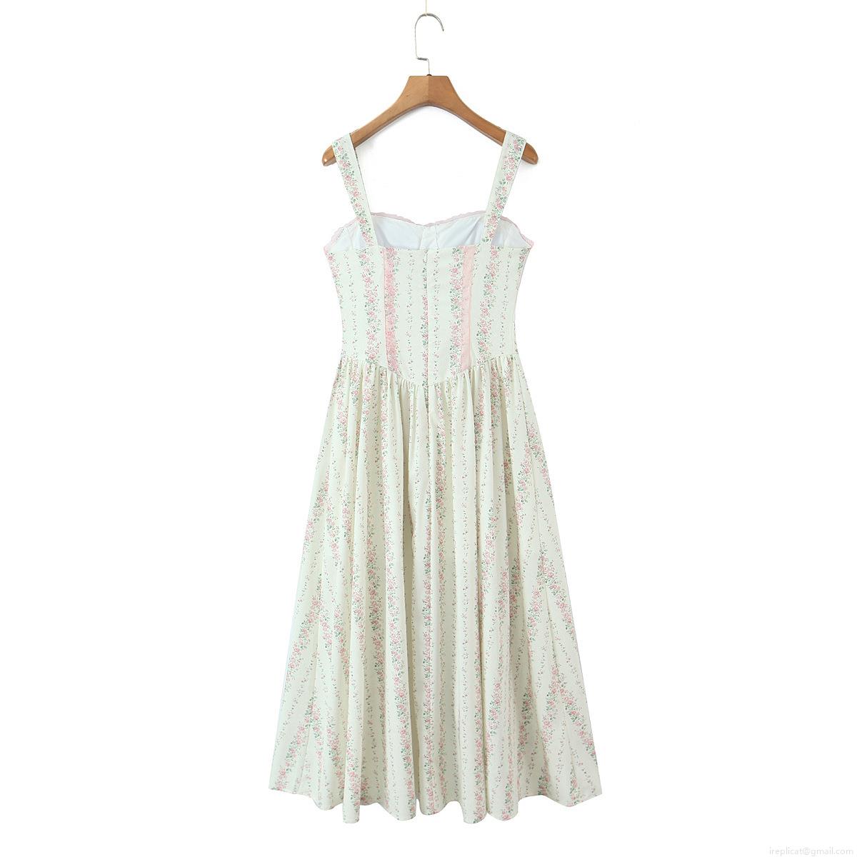 • Women French Retro Floral Spaghetti Strap Maxi Dress Summer Casual Cotton Lace Trim High Waist Slim Fit Sweet Vacation Long Dresses