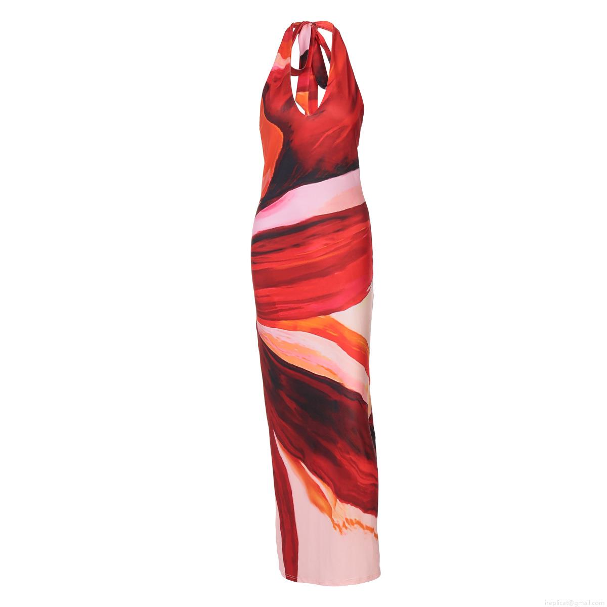 • Women Halter Backless Maxi Dress Polyester Spandex Abstract Marble Print High Slit Bodycon Floor Length Sexy Sundress For Summer Party Vacation Clubwear